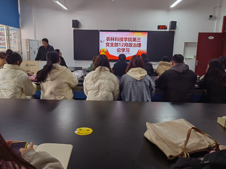 2023年12月27日中午,农林科技学院第三党支部在农林楼707室召开会议,进行了12月份的“三会一课”及主题党日,本次会议由支部书记刘一丁同志主持,支部党员和积极分子共28名同志参加。