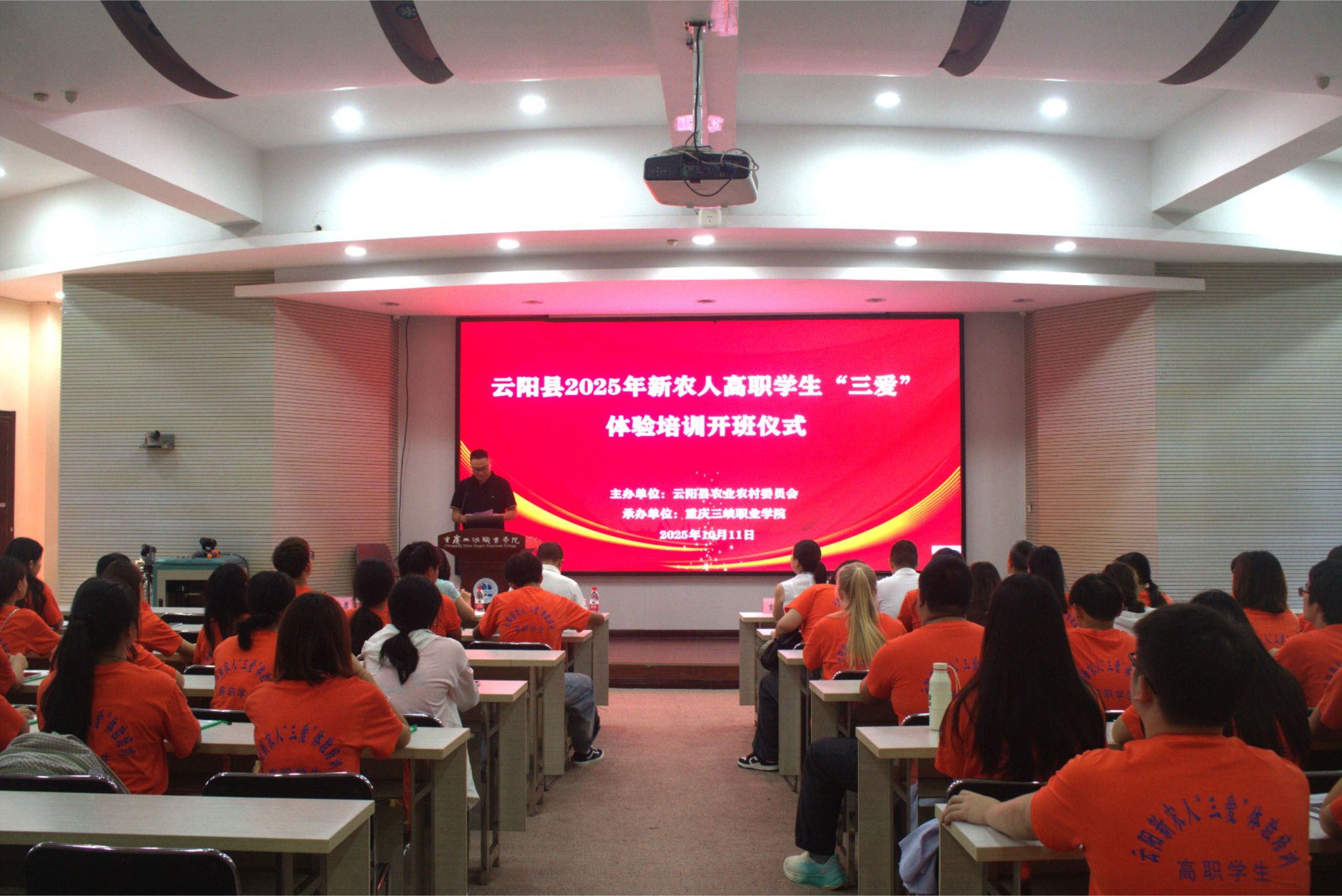 10月11日,云阳县2025年新农人高职学生“三爱”体验重庆三峡职业学院班开班仪式在博雅楼207会议室举行。本次教育培训由云阳县农业农村委员会主办、重庆三峡职业学院承办、农林科技学院组织实施,旨在为乡村振兴培育后备力量,让高职学生更好地在参观学习考察中深入理解“三农”。