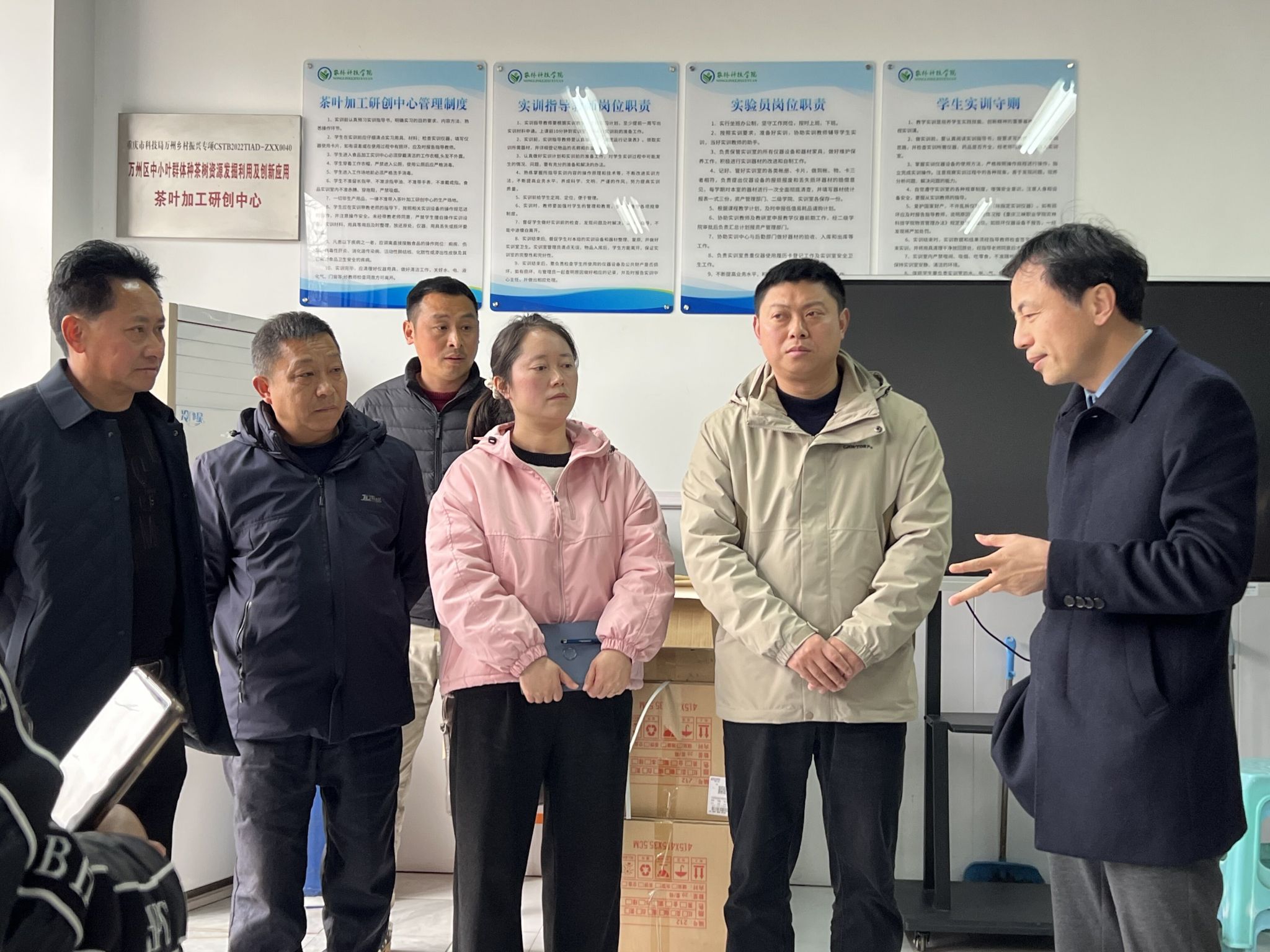 3月5日,万州区小周镇副镇长陈蜀栋带领产业服务中心主任屈祥裕、马道村党支部书记张德富、小周村党支部书记杨本波、马褡村党支部副书记佘顺树、大堡村党支部书记佘兴强等一行,携手重庆三峡农科院科技科陈泉、果树室马晓丽等专家,来到农林科技学院共同开展校地合作交流活动。学校副院长丁廷发、农林科技学院党总支副书记田君、农林科技学院副院长曹剑以及植保、园艺、种子、食品教研室的老师们热情接待并参加了本次交流活动。