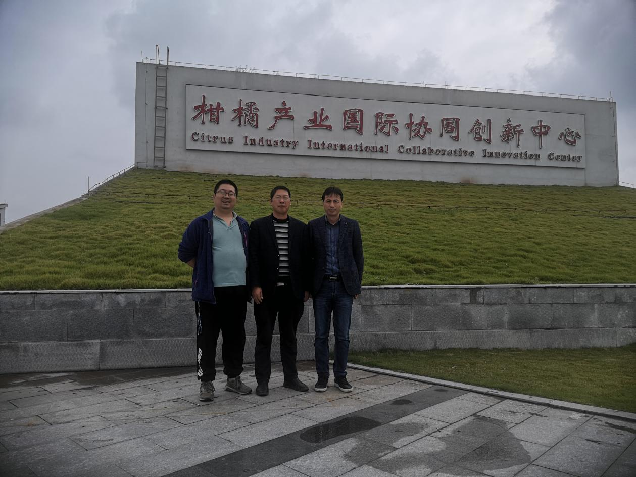 农林科技学院院长丁廷发于2022年10月29日率园艺技术专业吴琼和刘一丁等前往重庆市忠县果业发展中心拜访,就园艺技术专业群市级双高建设相关内容进行了合作商讨。经过商讨,基本与忠县果业发展中心达成了就人才培养、乡村振兴、柑橘栽培技术研究与推广、重大病虫害防控关键技术研究和柑橘加工产品开发与综合利用等方面的合作意向。随后,在罗建文科长的陪同下,丁院长一行参观了忠县柑橘产业国际协调创新中心。