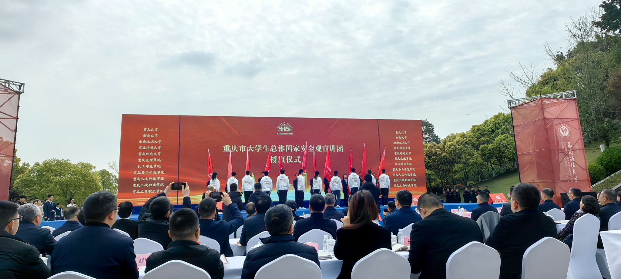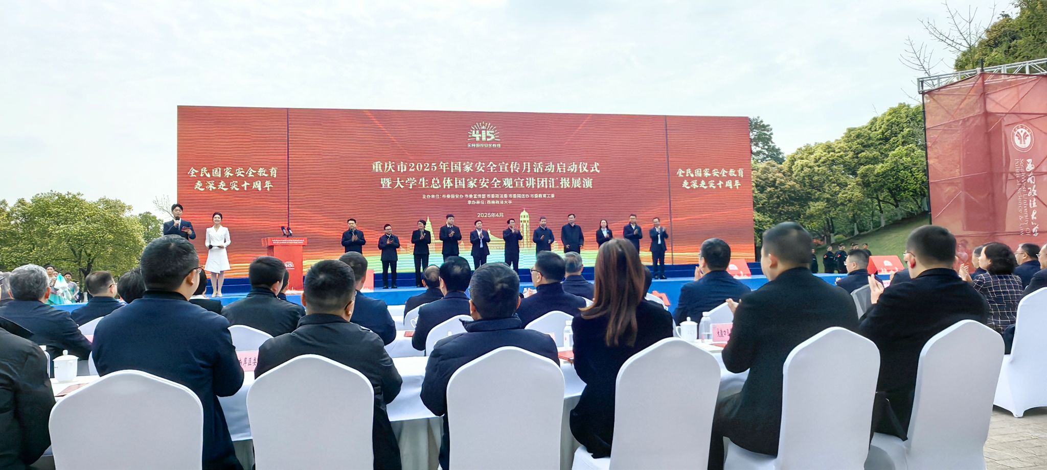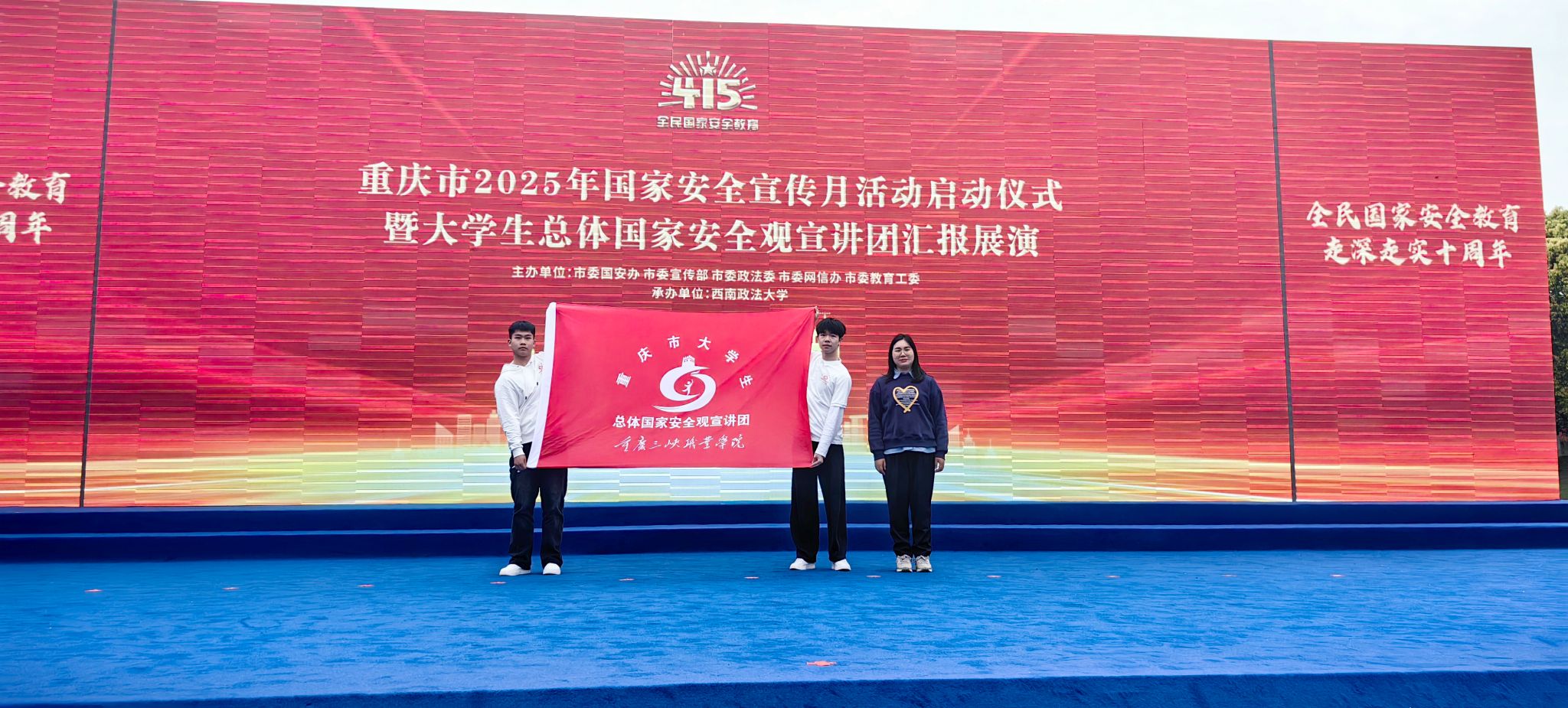 今年4月15日是我国第十个全民国家安全教育日。为贯彻落实习近平总书记关于全面加强国家安全教育的重要指示精神,进一步增强学院师生的国家安全意识和素养,切实提升维护国家安全的能力和水平。2025年4月1日学院党委副书记杨梅带领3名师生,作为高校代表参加了市委组织开展的重庆市2025年国家安全宣传月活动启动仪式暨大学生总体国家安全观宣讲团汇报展演。