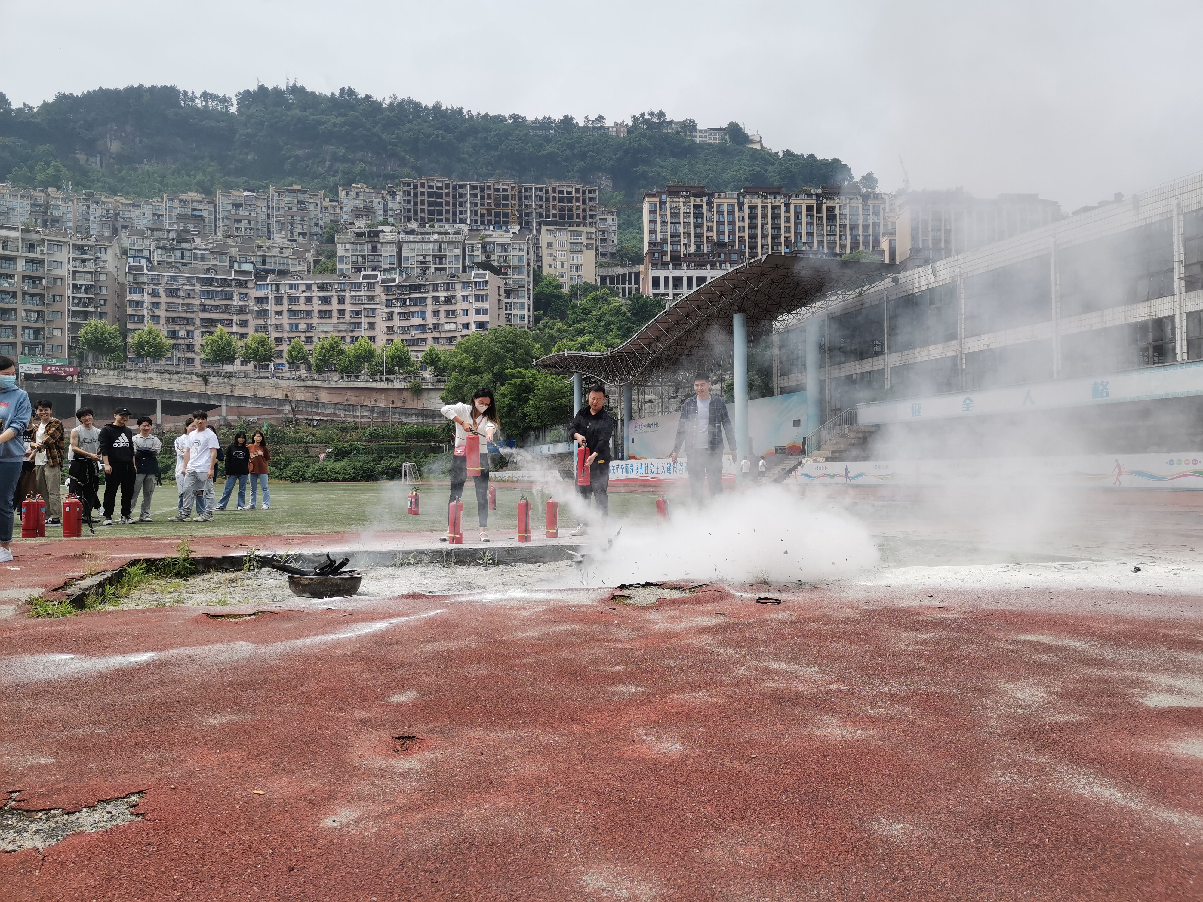 三是组织物业公司安保人员联合各二级学院做好消防及实训安全演练活动,当遇到火灾时,安保人员迅速做出应急处置,根据火势大小进行初期扑救并正确进行火情报警,演示如何正确使用灭火器,引导学生有序疏散。