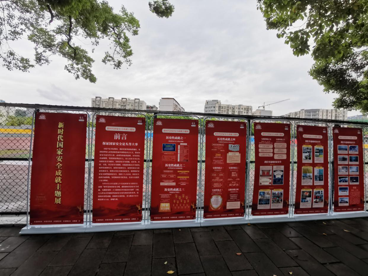 二是组织开展了以国家安全成就为主题的校园图片宣传展,在现场安全处老师和同学们讲解着国家安全相关知识,希望同学们通过学习能强化对国家安全的认识,真正明白国家安全的重要性。同时在校内悬挂国家安全宣传横幅5幅,在学校LED屏滚动播放国家安全知识,发放国家安全宣传资料3000余份,通过学校官微推出国家安全成就主题展相关资料。