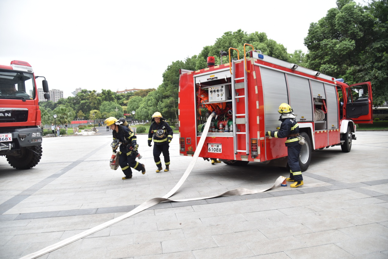 一次消防器材培训体验,为新生手把手教会使用方法和技能。在运动场14个方块或围圈中,都有一名安全处老师或消防官兵讲解员,针对灭火器、灭火毯、消防水带水枪连接及灭火原理、使用方法等进行一一讲解。同学们积极互动,纷纷动手体验。随即,168名新生消防志愿者手持灭火器,在博雅楼广场分组轮流开展了实战灭火。