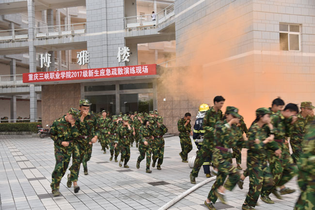 根据年度安稳工作计划,2017年9月17日我院在运动场组织开展了2017级新生消防知识进军训系列活动,先后对2600余名新生开展了消防知识安全讲座、发放消防知识科普读物、观摩和体验消防设施设备、消防器材的使用讲解和体验、灭火实战演练、疏散演练逃生活动。整个活动在学生处、各教学系部、万州区双河口消防中队,军训团教官的大力支持和配合下,于下午17时先后历时近3小时圆满结束。