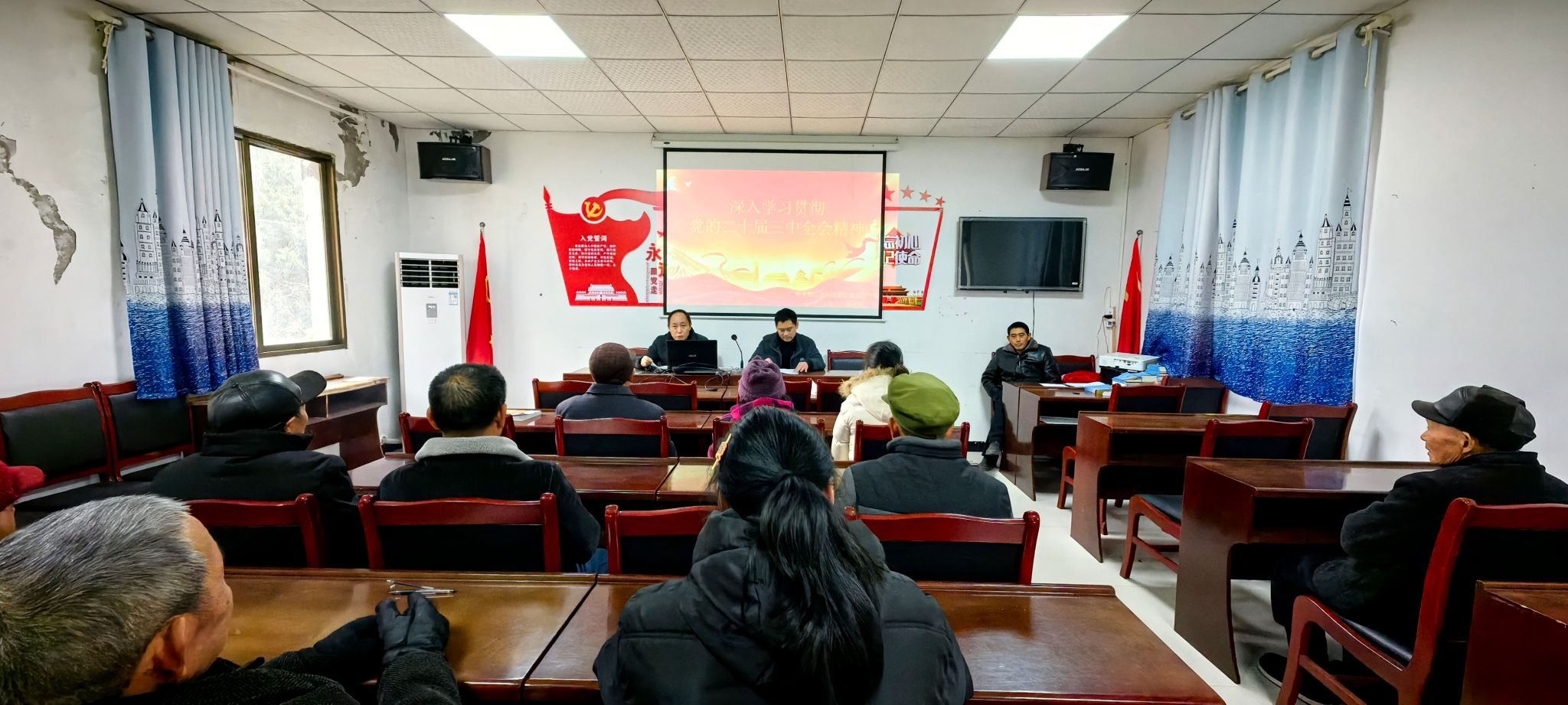 同时两个支部党员同志们前往大冲村便民服务中心会议室,机关第二党总支第三党支部书记扶永辉开展了以“深入学习贯彻党的二十届三中全会精神”为主题的专题党课。