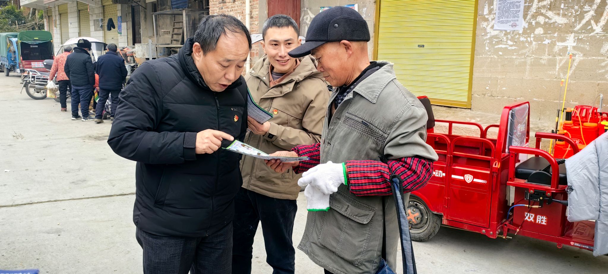 首先支部党员们为村民们开展防骗反诈、消防安全、交通安全等安全知识讲解,发放安全宣传资料,希望在岁末年初村民们强化安全意识,提升安全技能。