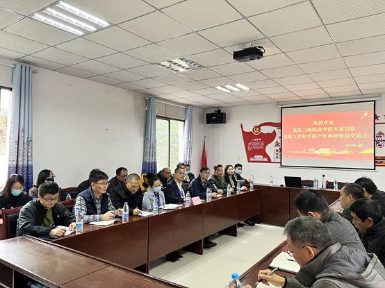 在大冲村便民服务中心,学校专家团队和机关第二党总支第三党支部一行与大冲村党支部首先进行交流座谈。大冲村支部张书记和驻村第一书记扶永辉分别就村里产业发展与规划的基本情况进行了介绍,希望学校专家团队能在村里产业振兴上给予指导与支持,机关第二党总支第三党支部曾理书记表示将会以此次座谈为契机,真正把帮扶乡村产业振兴落到实处,学校专家团队及支部会将帮扶形成常态化,持续不断为村里提供指导与支持。