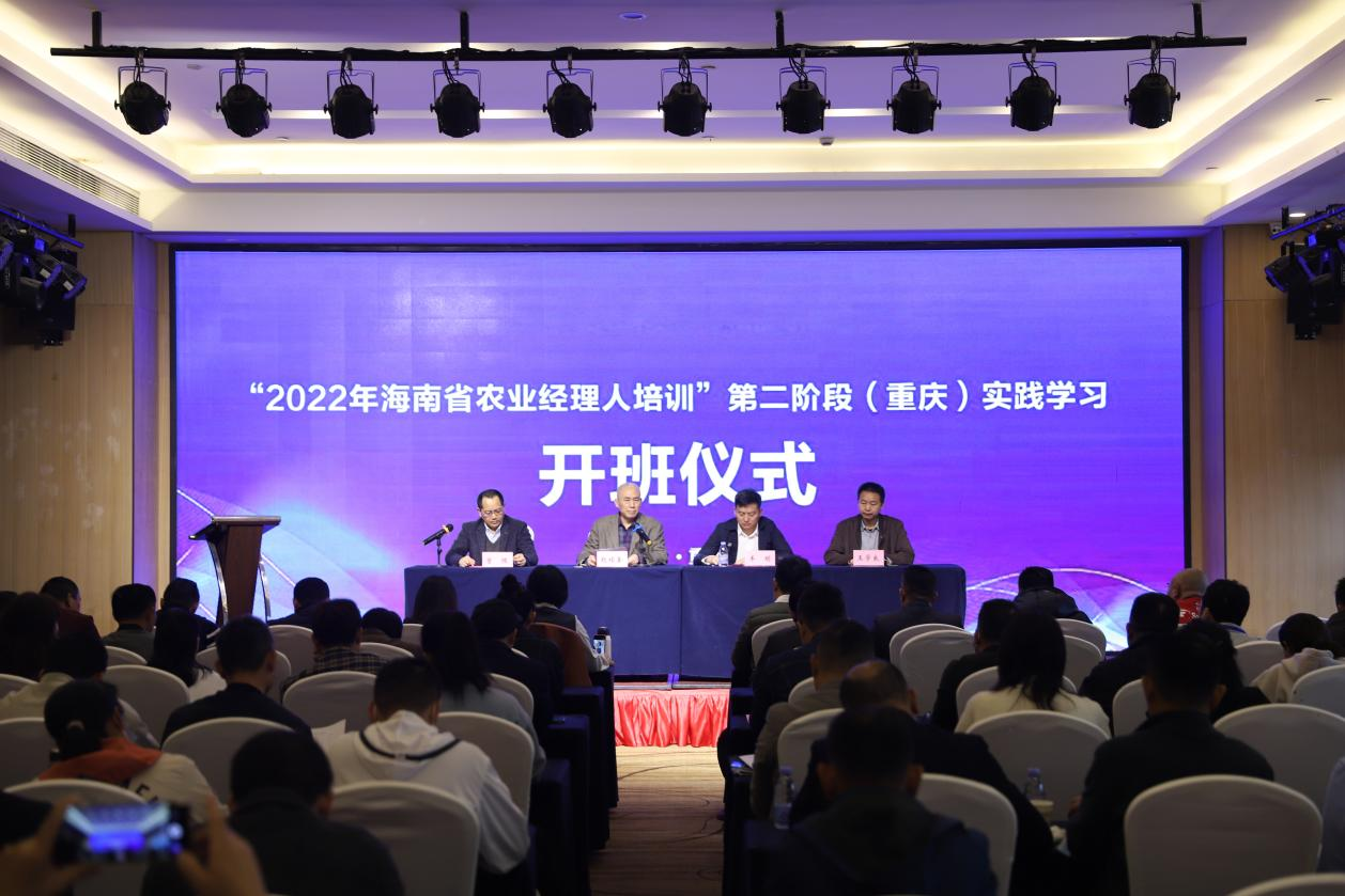 2023年3月18日上午,由海南省农业农村厅主办,中国热带农业科学院承办,重庆三峡职业学院协办,开展实施为期五天的“2022年海南省农业经理人培训第二阶段(重庆)实践学习”开班仪式在重庆市渝北区港森国际大酒店三楼会议室顺利举行。