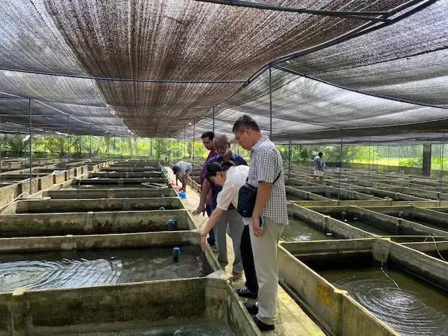 下午1:00,水产养殖专家吴春艳深入考察斯里兰卡热带小型观赏鱼养殖和热带海水鱼养殖项目,就观赏鱼种鱼来源、品种孵化、养殖技术、疾病防控、开口饵料及品种改良等进行了全面指导,针对发现的品种繁育和改良、饲料与营养、经营与销售等问题进行了详细探讨。下午5:00,赵福奎副院长等来到现场为斯里兰卡“重庆三峡职业学院观赏鱼培训基地”授牌。