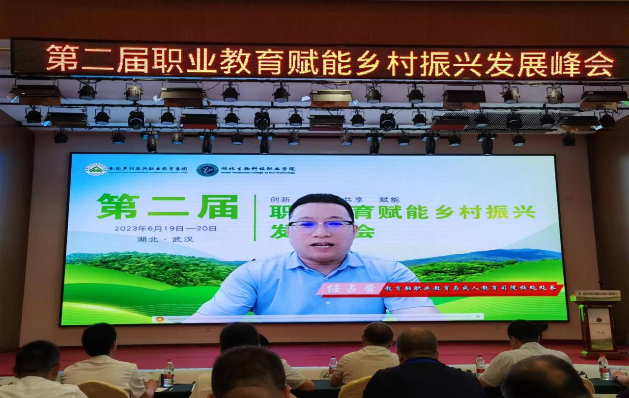 教育部职业教育与成人教育司职业院校发展处处长任占营发来致辞视频,他希望广大职业教育工作者“立志向尽职责建新功,助力乡村振兴发展”,树立助力乡村振兴发展的远大志向,培养一大批立足乡村、扎根乡村、服务乡村,沉得下、用得上、留得住的高素质技术技能人才,发挥职教集团作用,共建交流合作平台,共享优质教育资源,共育乡村振兴人才。