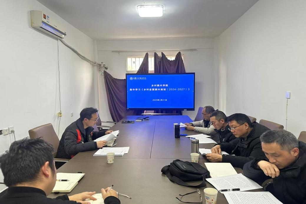 为响应党中央号召,深入实施乡村振兴战略。2025年2月21日下午,我院在培训学院(乡村振兴学院)202会议室集中学习《乡村全面振兴规划(2024-2027年)》,乡村振兴科程俊凯科长组织组织领学,分水镇大冲村驻村第一书记汪立、驻村队员陈在良、张世成和恒合乡水口村驻村第一书记柯伟参加学习。