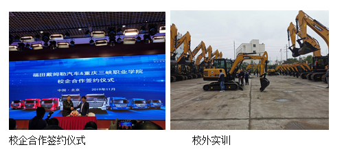 继续深入校企合作,本年度与长安汽车、吉利汽车、比亚迪汽车、金康新能源汽车等大型企业开展了初步合作。加入了吉利汽车产教联盟,吉利汽车 “成蝶计划”。与福田戴姆勒集团签订了校企合作框架协议。