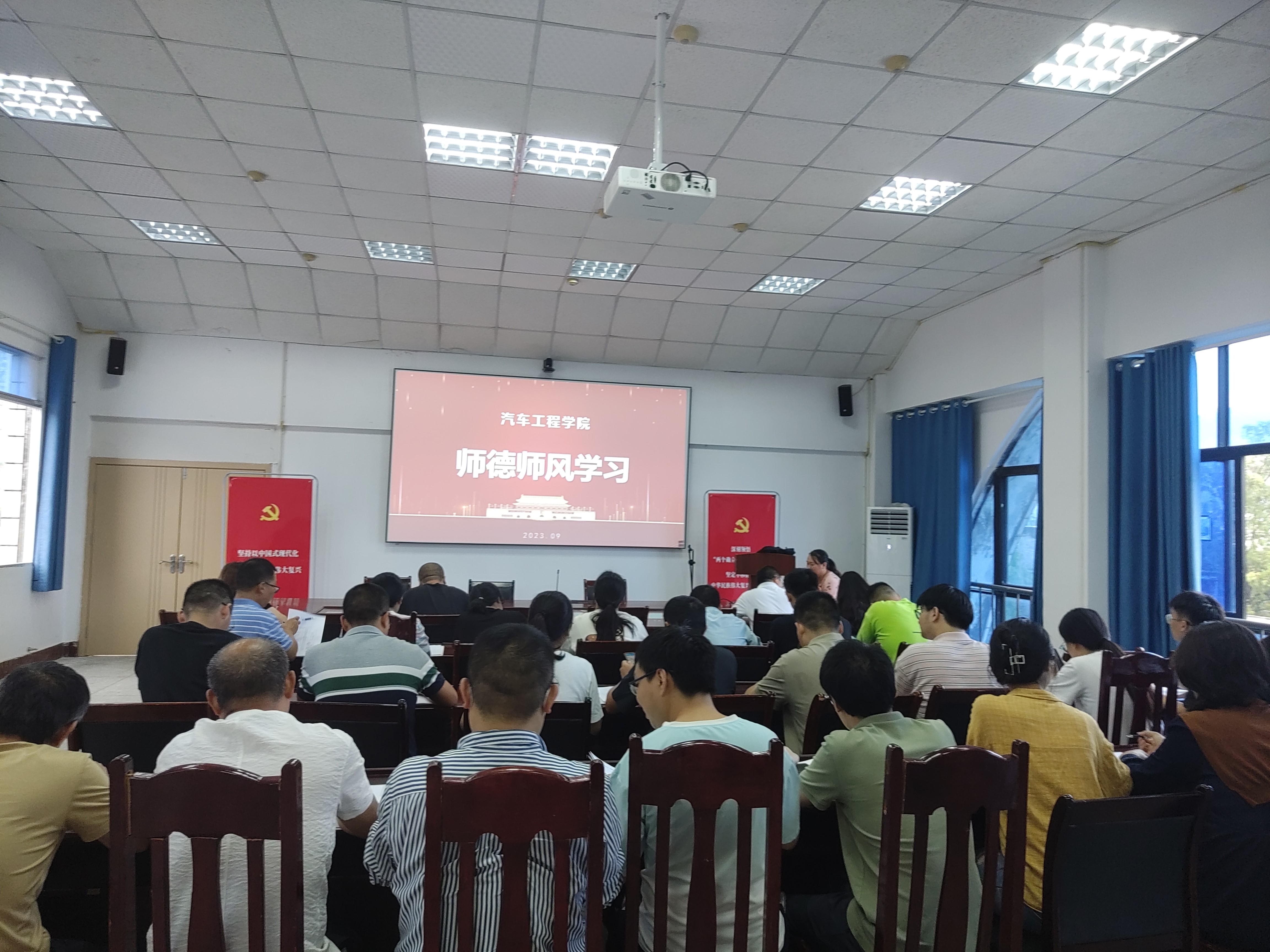 9月12日下午,汽车工程学院组织教师开展师德师风和警示教育学习,汽车工程学院全体教师参加了学习活动。汽车工程学院教学科科长蔡彧同志带领大家学习了教育部2023年全国教书育人楷模和典型案例警示教育:教育部公开曝光第十三批7起违反教师职业行为十项准则典型案例。