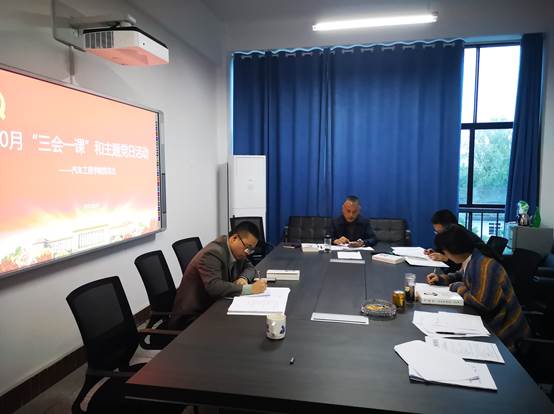 10月25日汽车工程学院党总支10月“三会一课”专题学习和主题研讨活动在汽车工程学院会议室举行。会议由汽车工程学院党总支书记夏平主持。此次集中全文学习了《习近平总书记在参观“奋进新时代”主题成就展时重要讲话精神》、《习近平总书记给北京师范大学“优师计划”师范生的回信》、《习近平总书记为《复兴文库》作序言强调 以史为鉴察往知来 在复兴之路上坚定前行》、《中共中央政治局9月9日会议精神》4篇习近平总书记的重要论述。开展了《习近平谈治国理政》第四卷“第二专题:坚持党的全面领导”专题学习研讨。