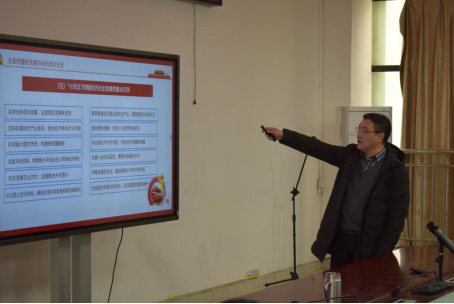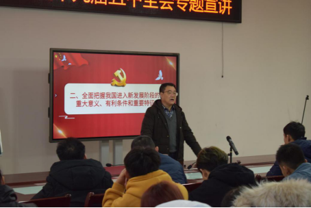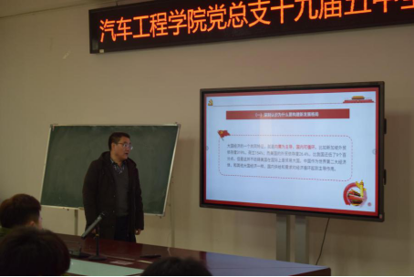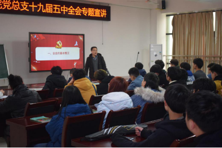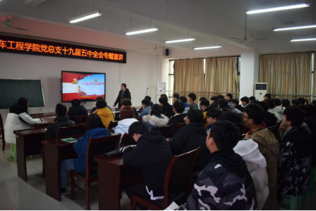 2020年12月18日星期午后12:40—13:20,汽车工程学院党总支书记陈小刚在学校奥训楼403教室为我院师生解读十九届五中全会精神。我院党员教师、入党积极分子和部分班团干部共60余人聆听了宣讲。