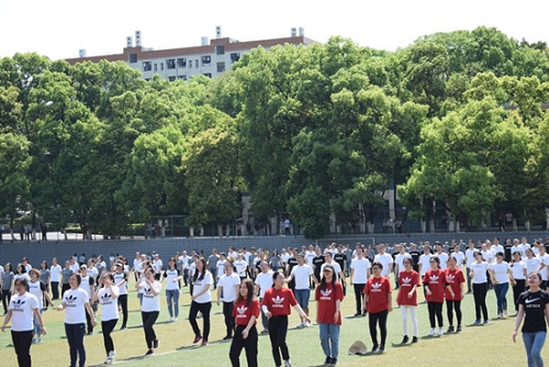 12日下午两点半,在充满青春与热情的第九套广播体操的音乐声中,我校六个二级学院的教职工们,以学院为单位,排着整齐的队伍,在主席台面前集合,并以第九套广播体操作为运动会前热身。