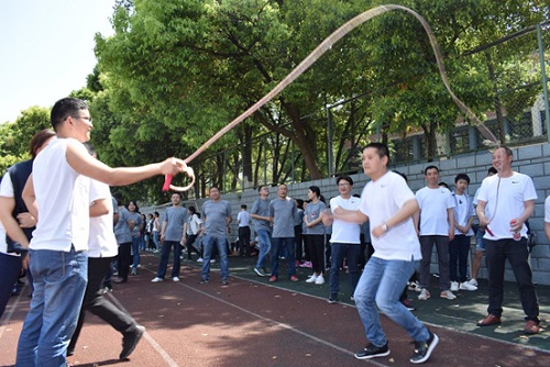 随着广播体操的结束,各比赛项目相继开始。本次活动共设立了“赶球接力、集体跳绳、迎面接力”三个运动项目。