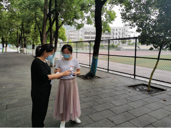 首先设置的场景是学校樟树林,由于我们的教学场所分散,这里设置了辅导员与任课老师的交接情景。首先由辅导员对班级学生整队,逐个测量学生的体温,并和任课老师完成交接表,任课老师在班委的协助下,将学生有序的带入教学区。