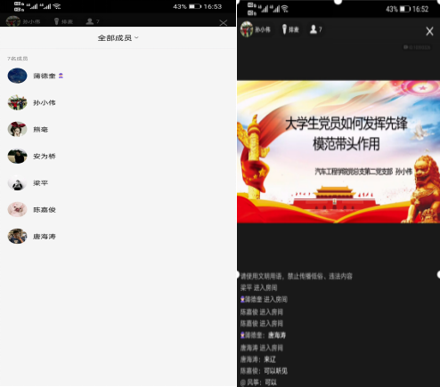 2020年5月7日,汽车工程学院党总支对2020年上半年发展对象进行第三次授课。本次课程由汽车工程学院党总支第二党支部书记孙小伟以《先进青年学生如何发挥党员模范带头作用》为主题的授课,6名发展对象参加了此次线上培训。
