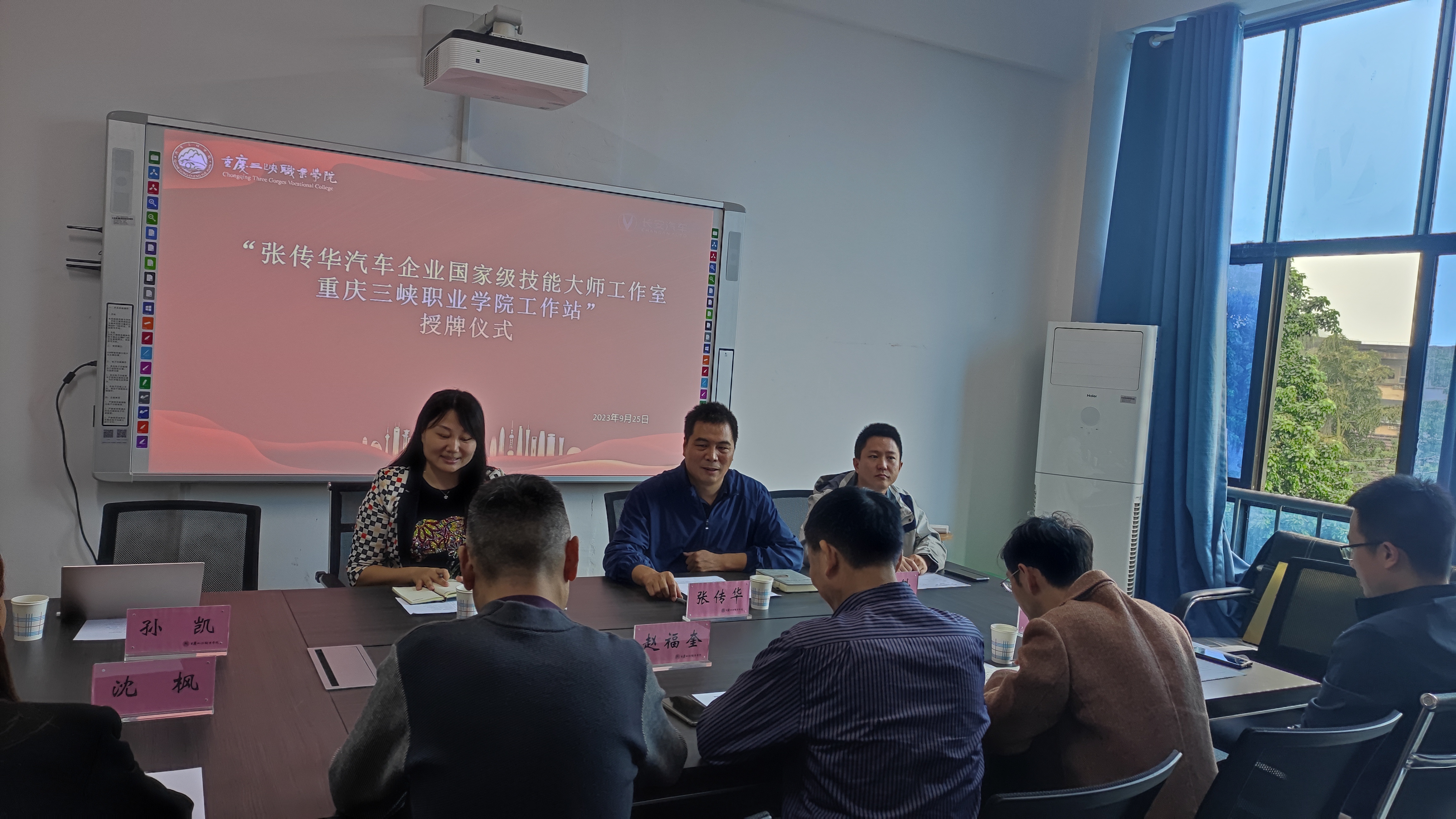 为强化技能大师引领,培养高技能技术人才,9月25日,“张传华国家级技能大师工作室重庆三峡职业学院工作站”揭牌仪式在沙龙校区汽车工程学院顺利举行。国务院津贴获得者、国家级技能大师张传华,全国技术能手、技能大师工作室成员田钭,长安产教融合项目推广办公室主任李燕,长安产教融合项目推广办公室项目主管孙凯,学院党委委员、副院长赵福奎,学院对外交流合作处处长谭军,汽车工程学院党总支书记、院长夏平,汽车工程学院党总支副书记沈枫、汽车工程学院副院长谢焕以及各教研室主任参加了揭牌仪式。