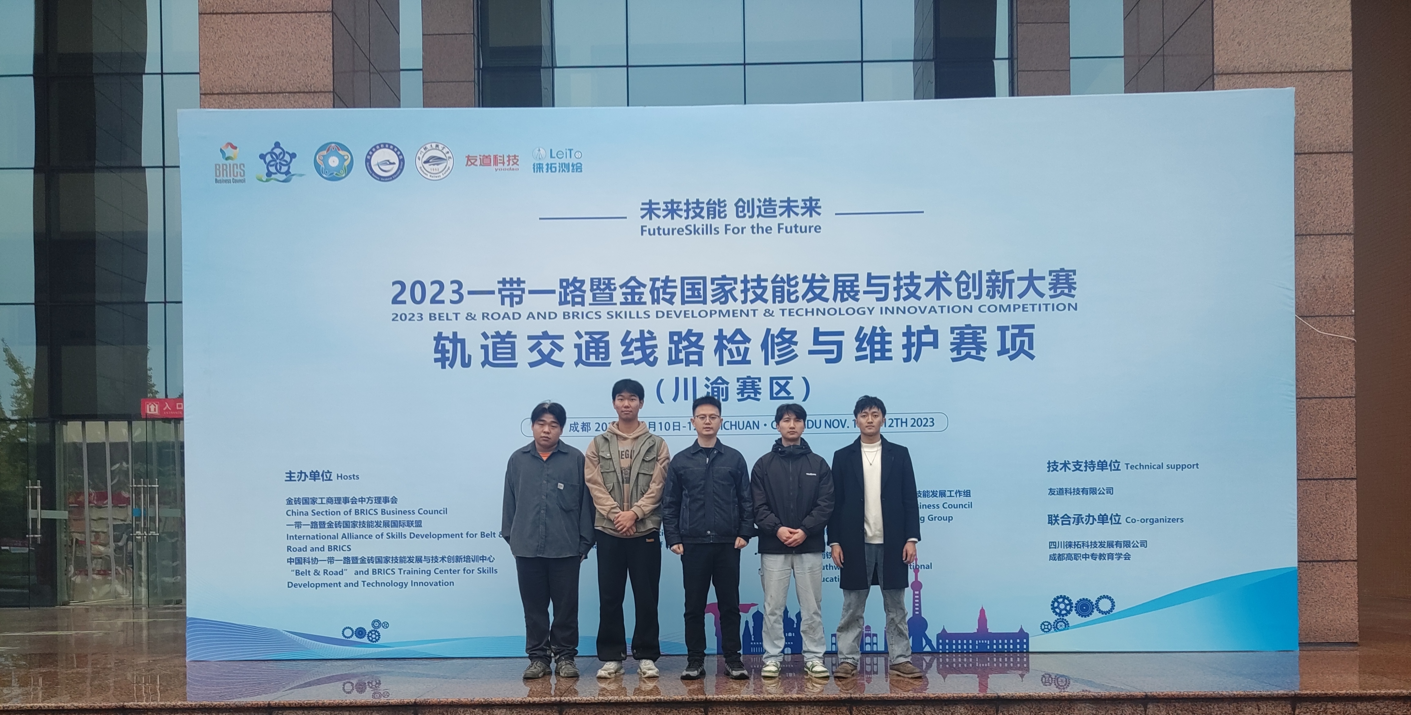 2023年11月12日,2023一带一路暨金砖国家技能发展与技术创新大赛轨道交通线路检修与维护赛项川渝区域选拔赛在四川成都圆满落幕。经过激烈角逐,汽车工程学院严浩洲与冉毅老师指导的徐钰杰、刘燚、王乐、李宇瀚四名选手在竞赛中荣获团体一等奖与三等奖。