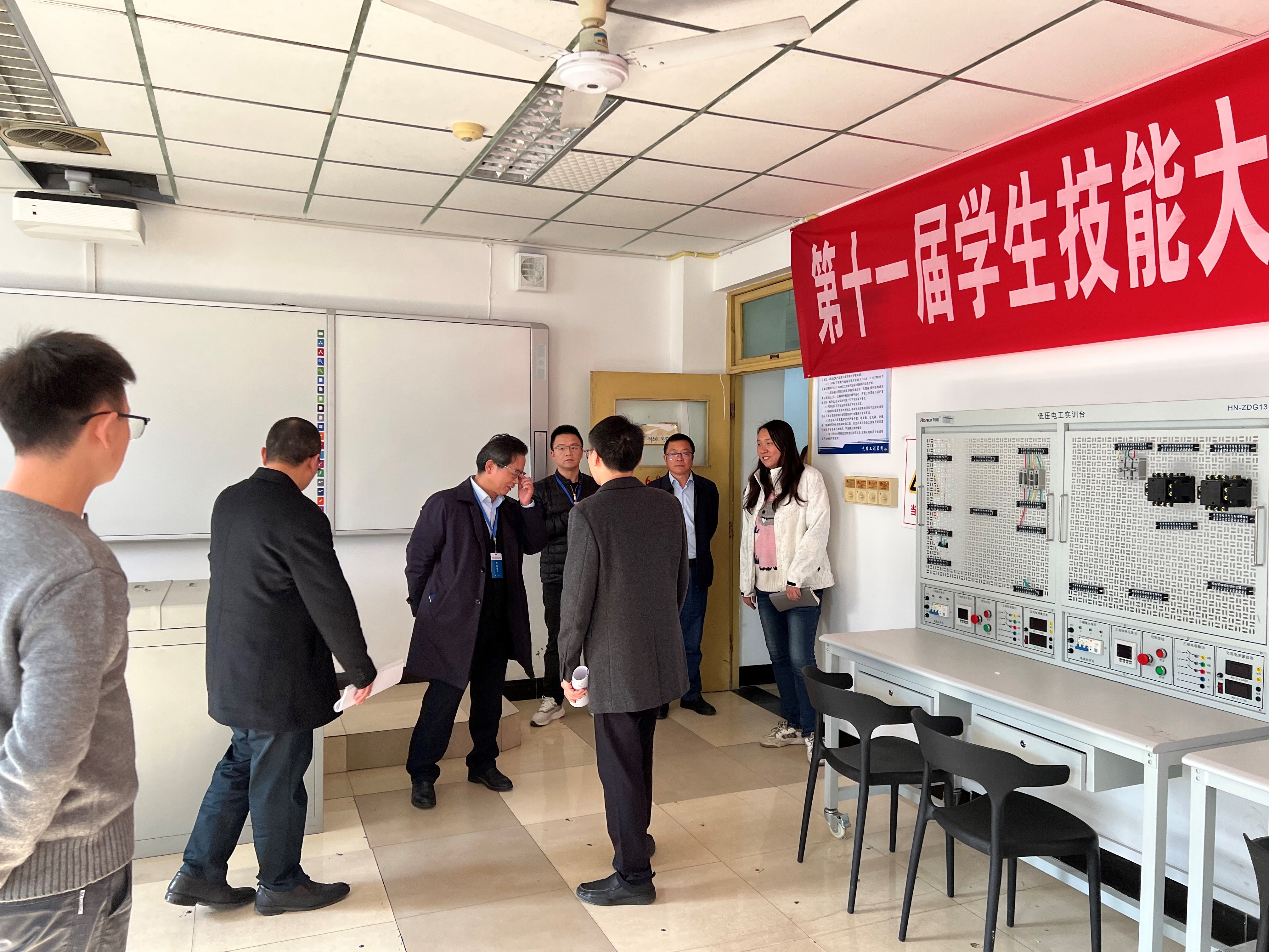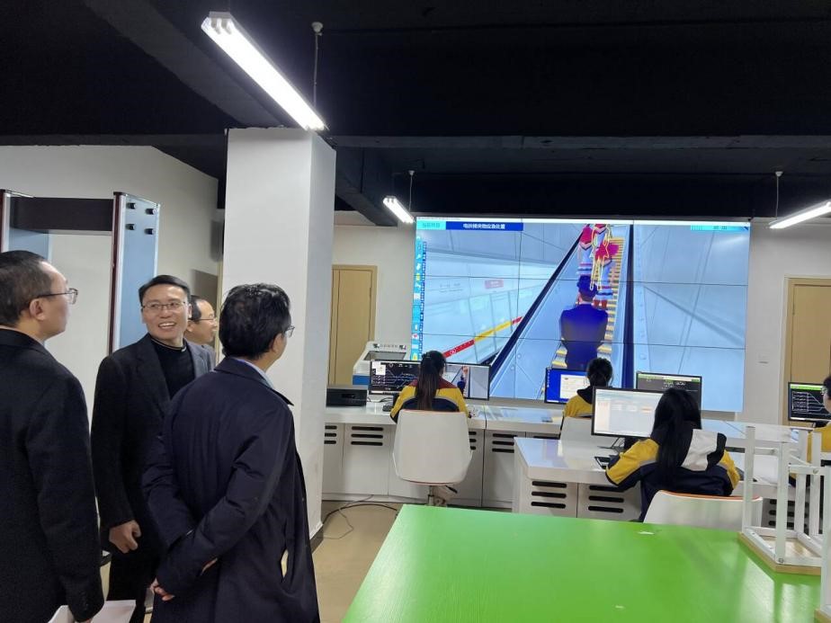 见面会结束后,专家组在校领导和相关负责人的陪同下前往实训中心大楼和综合楼,先后参观了交通调度实训室、交通模拟实训室、安检理实一体教室、形体训练实训室、机房、低压电工实训室、物流实训基地等校内实训场所。