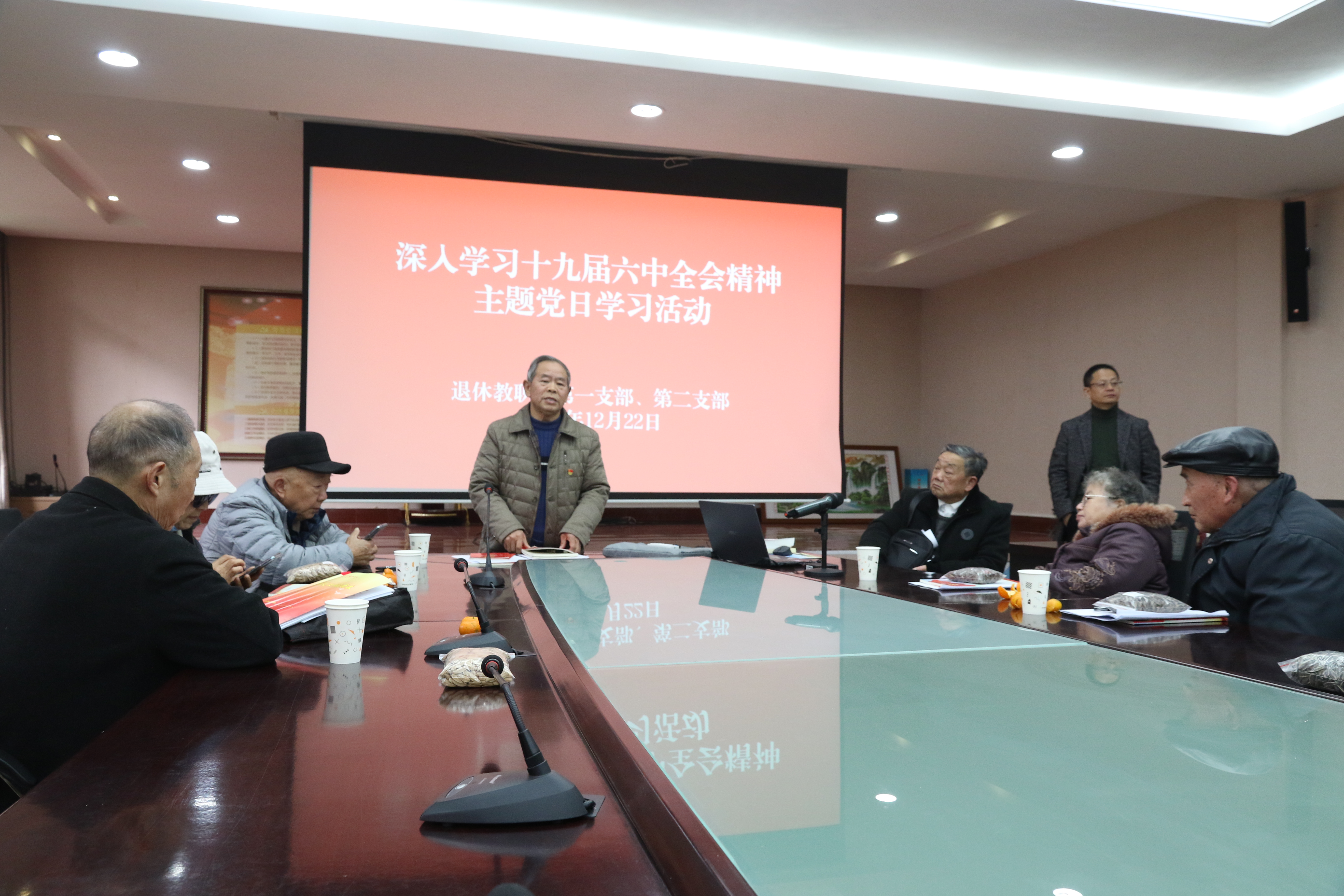 12月22日,机关一总支第二支部、退休总支第一支部、退休总支第二支部在行政楼303会议室开展了“学习十九届六中全会精神”主题党日活动。党委书记陈章作十九届六中全会精神学习解读报告,会议由机关一总支二支部书记、退休党总支书记柯海浪主持,支部党员列席会议,此次会议共分为四个议程。