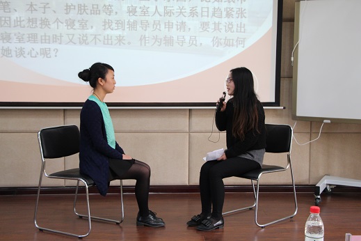 本次辅导员技能大赛分为“基础知识考核及微博写作”、“自我展示及案例分析”和“谈心谈话”等三个环节。重点考察辅导员对基础知识及其他相关知识的掌握和理解;考察辅导员理论素养、文字能力及利用新媒体技术开展大学生思想政治教育工作的能力、逻辑思维能力、语言表达能力和对班级学生的了解、熟悉程度;考察辅导员对现实工作中的具体案例进行分析、解决的能力及对突发事件的应急处理能力;考察辅导员对学生进行思想政治教育过程中的组织、策划以及现场实施的能力。各参赛辅导员备战积极、准备充分,他们优秀、精彩的表现赢得了在场评委、辅导员同行以及学生们的一致好评。