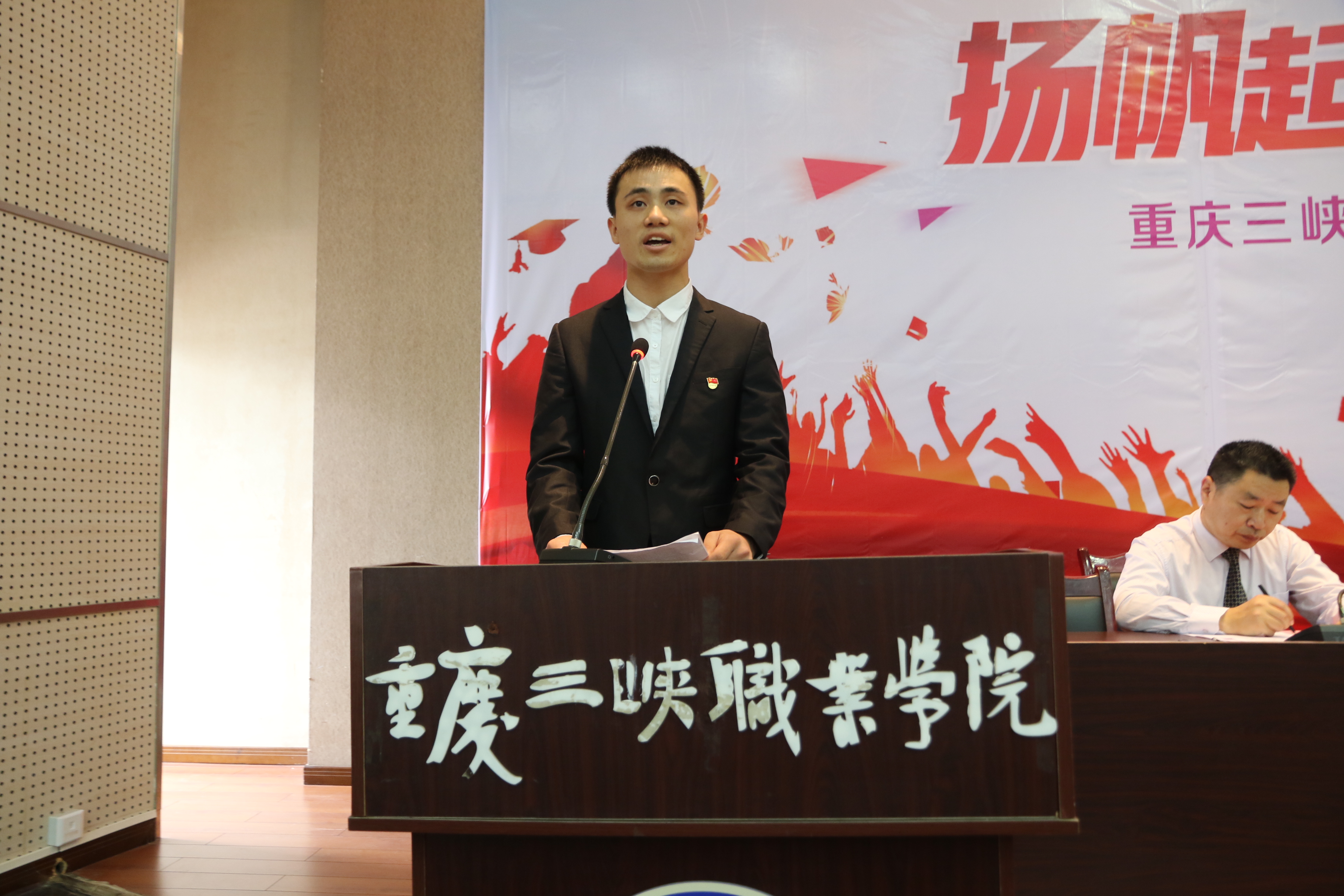 张雪斌老师作为教师代表发言,他讲到,希望每位三峡职院毕业生都要有一种昂扬向上的精神风貌,努力拼搏,把握机遇,成为想干事,会干事,干成事的人。毕业生代表王军港同学说到,感谢学校给予在知识、品德上对学生的关怀,他表示,毕业后将秉承着“德厚学勤,技高业精,工于继承,志在创新”的三峡职院精神,努力学习,继续深造,以追梦者、圆梦人的姿态书写心中的中国梦。将携母校之学,以青春之我造就青春之国家。