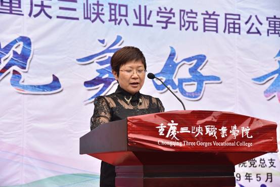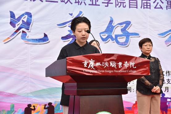 刘伊鸿同学代表全校学生宣读了重庆三峡职业学院首届公寓文化节倡议书。倡导同学们打造干净整洁,舒适温馨的生活环境。营造互助友爱、积极向上、锐意进取的学习氛围。做好寝室安全防范,积极参加安全宣传活动。在现场引起了强烈的共鸣,赢得大家的热烈的掌声。