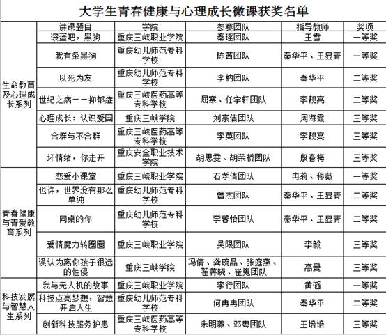 在大学生青春健康与心理成长微课比赛中,万州片区各高校选送的20组微课,围绕着“青春健康与青爱教育、生命教育与心理成长、科技发展与智慧人生”三个系列,选手们通过5分钟的现场讲课和展示,用生动的语言,丰富的讲课形式,真挚的授课态度,富有激情的表达方式,把热爱祖国,青春健康、异性交往、责任担当,专业前景及应用展望这些主题呈现在我们面前,生动诠释了本届成长论坛“汇聚成长智慧,共创出彩人生”的主题,展示了青年一代对心理健康的思考,对自我身心健康成长的关注和关心。