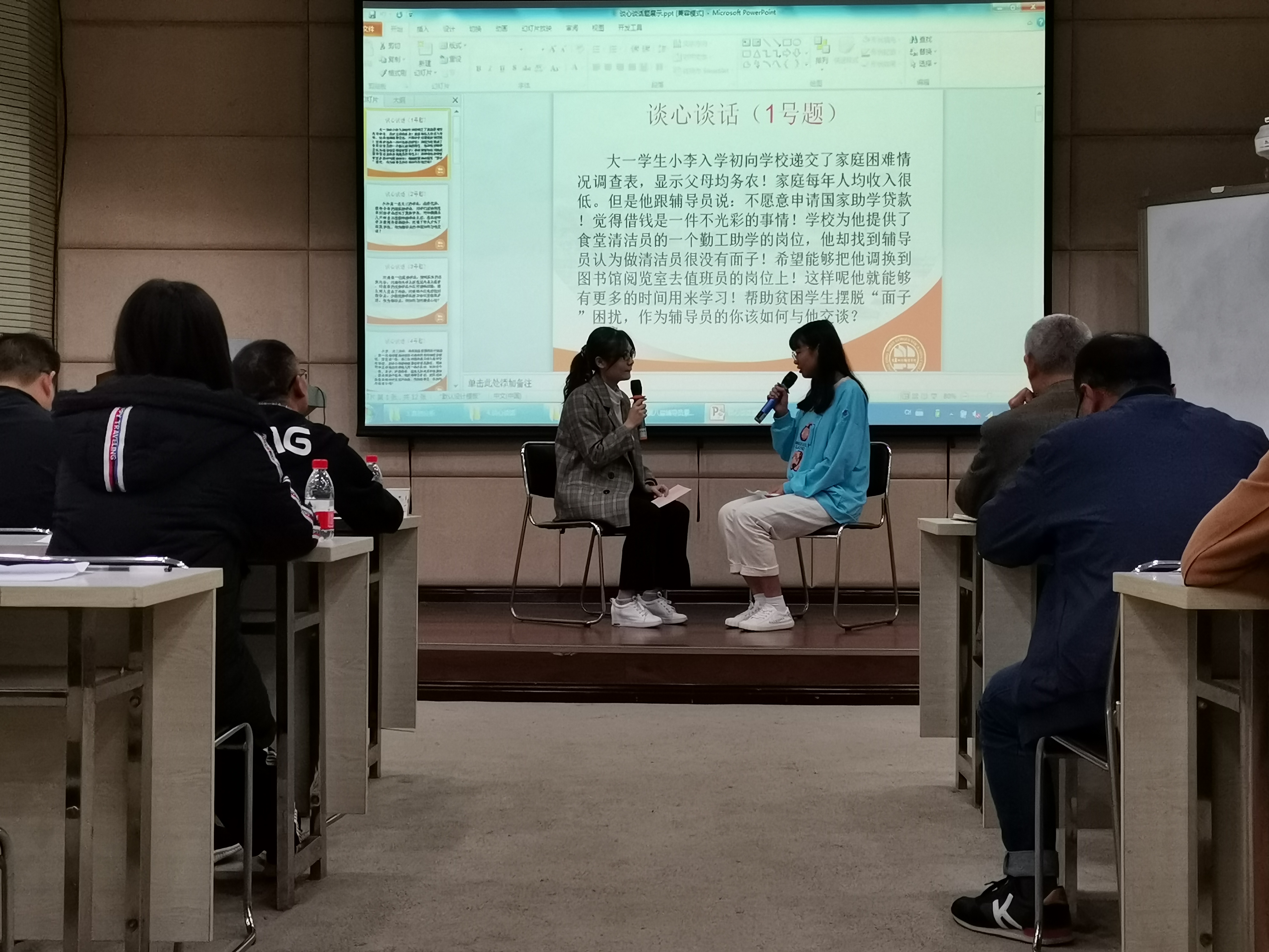 11月4日下午,我院第八届辅导员素质能力大赛决赛在博雅楼207成功举办。学校副校长赵福奎教授出席了大赛,重庆三峡学院学生处处长任江林,重庆三峡医药高等专科学校药学院党总支书记王家陟,重庆安全职业技术学院学生处处长陈跃、重庆幼儿师范高等专科学校学生处处长张玲,重庆三峡职业学院学生处副处长黄莉担任评委。学工部全体人员,各二级学院党总支书记、学工科、全体专兼职辅导员现场观摩。此次辅导员大赛由学生工作部主办,历时近一个星期,旨在考察辅导员对马克思主义理论、习近平新时代中国特色社会主义思想、党的十九大精神等的学习宣传阐释能力,对相关理论政策、学生特征、学生成长成才规律的了解把握,以及对问题的解决能力和对学生的教育引导能力,从而不断提升辅导员的政治素质、理论水平、专业素养和职业能力。大赛共分为笔试、理论宣讲、案例分析和谈心谈话4个环节,全方位考核辅导员理论基本功及结合日常工作开展思政工作的能力。