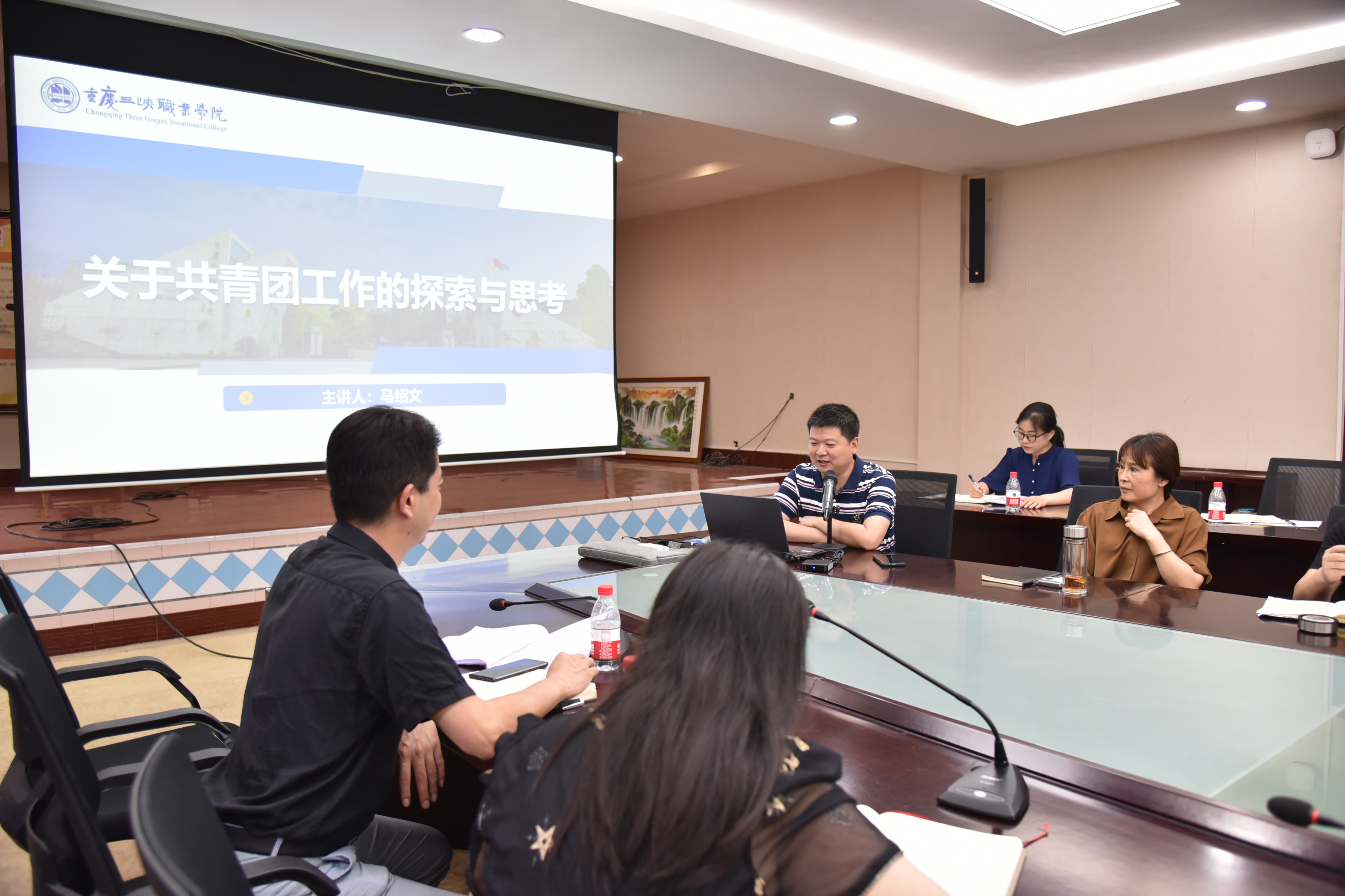 党政办主任、团委书记马绍文结合学校共青团工作对党团建设这一主题进行了讲授。他从共青团工作的基本情况、重点工作、基本团务、问题思考等四个方面展开,明确了坚持思想铸魂,聚力引领青年学子听党话、跟党走,坚持育人导向,聚力服务青年学子全面发展,坚持青春建功,聚力发动青年学子奋进“十四五”,坚持靶向施策,聚力解决青年学子“急难愁盼”问题,坚持改革强基,聚力提升团组织活力等共青团五项重点工作。同时,结合学校共青团工作实际,他指出目前还存在的一些问题以及改进方向,如系统思维不强、调查研究不深、主体关照不足,工作统筹谋划还要用力,成果凝练转化还要提升,为学生办实事还要强化等。