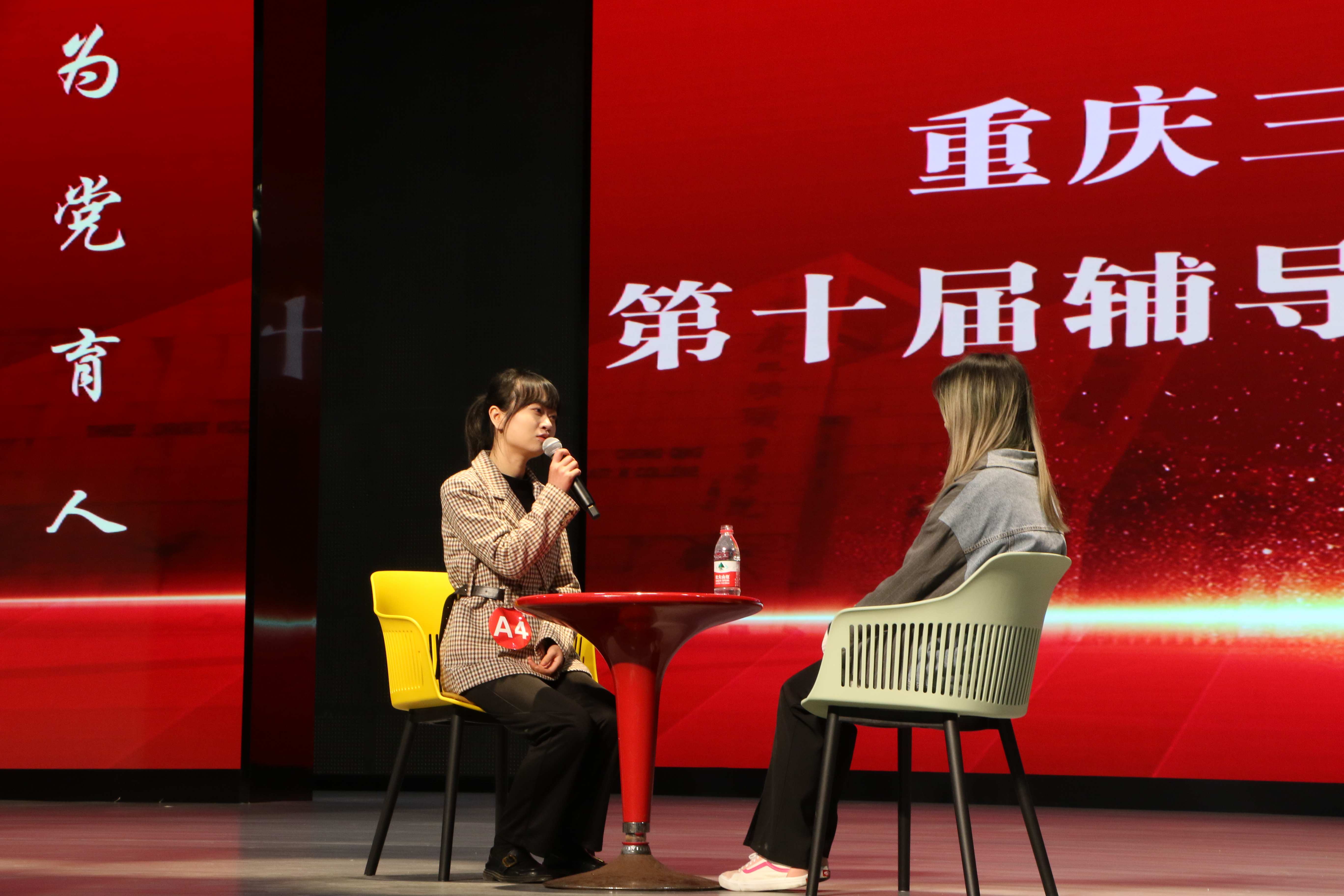 第二阶段为现场决赛,分为案例研讨和谈心谈话两个环节。案例研讨采用了“我提问,你回答”的AB角问答方式进行,由A、B选手围绕案例,共同辨析原因,研讨对策、总结规律,主要考察辅导员具体问题具体分析与解决的能力。谈心谈话主要考察辅导员对学生特征,学生成长成才规律的了解把握程度,对学生的教育引导能力、解决学生困惑和实际问题的能力。