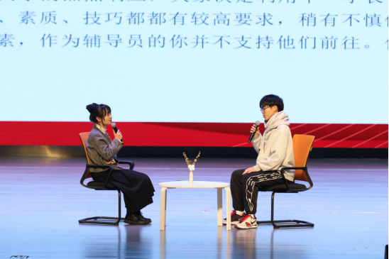 谈心谈话主要考察辅导员对学生的教育引导能力和解决实际问题的能力,参赛选手和学生助演通过题目设定在现场还原了平时工作中为学生答疑解惑的各种情景,精彩的互动赢得了在场观众的阵阵掌声。
