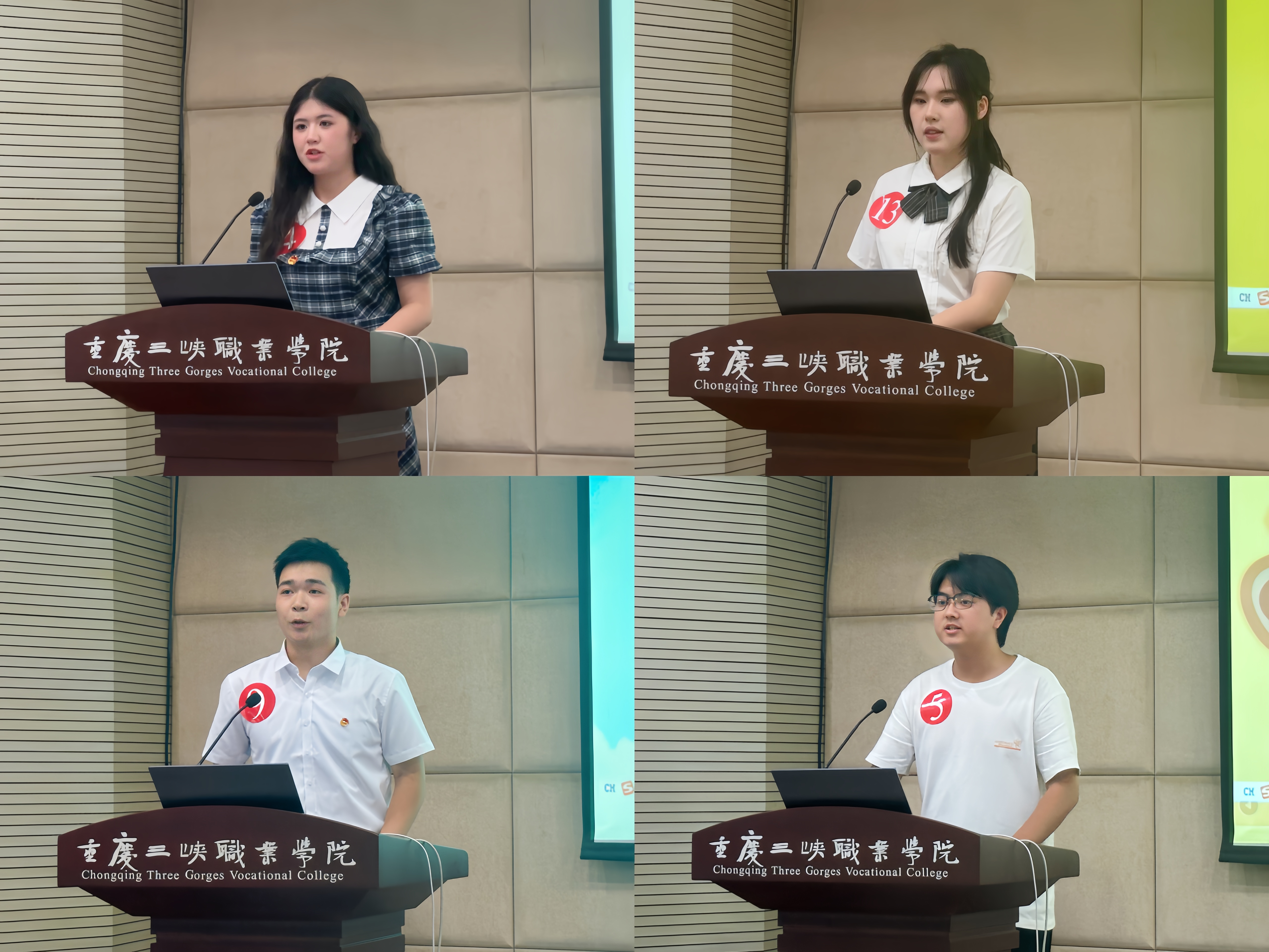 通过二级学院初赛推荐,共14名心理委员参加了现场决赛。决赛以汇报心理健康主题班会方案的方式进行,选手们通过精彩汇报,展示出自己对所班会主题的独特设计与创新表达,也传递出了积极向上的正能量。经过激烈角逐,十名选手获得“校园十佳心理委员”荣誉称号。