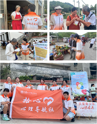 拾心·心理导航社的志愿者精心准备了心理健康知识展板、宣传册,在盛家村集市中摆摊向村民普及心理健康知识,发放心理健康教育手册,提升村民对心理健康的重视程度,为乡村和谐发展注入新活力。