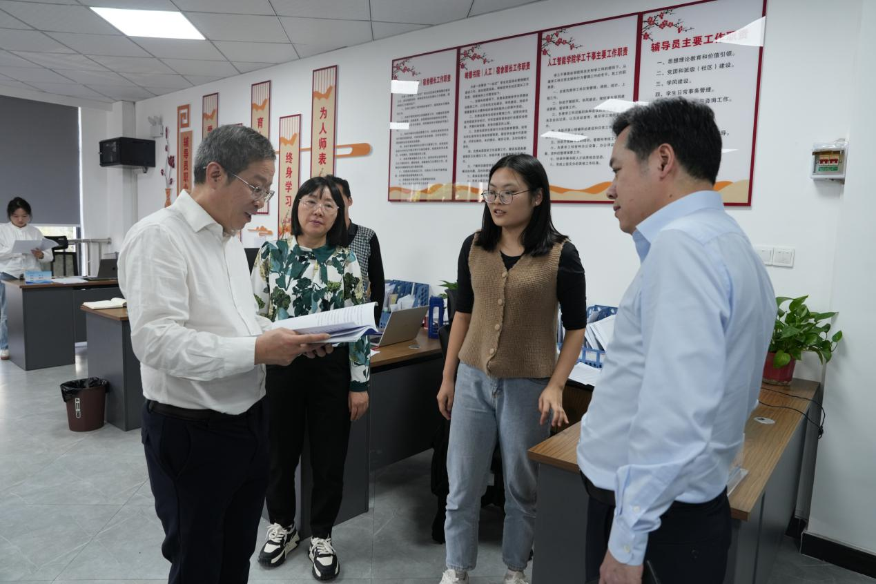 在峻德书院,他参观了诚信书吧,对学生自主借阅、自觉归还、自我监督管理的做法表示肯定。他参观了峻德书院、广德书院的辅导员工作室,对学校的辅导员名师工作室建设表示赞赏,认为我校的辅导员队伍建设方法新、措施实,育人效果突出。