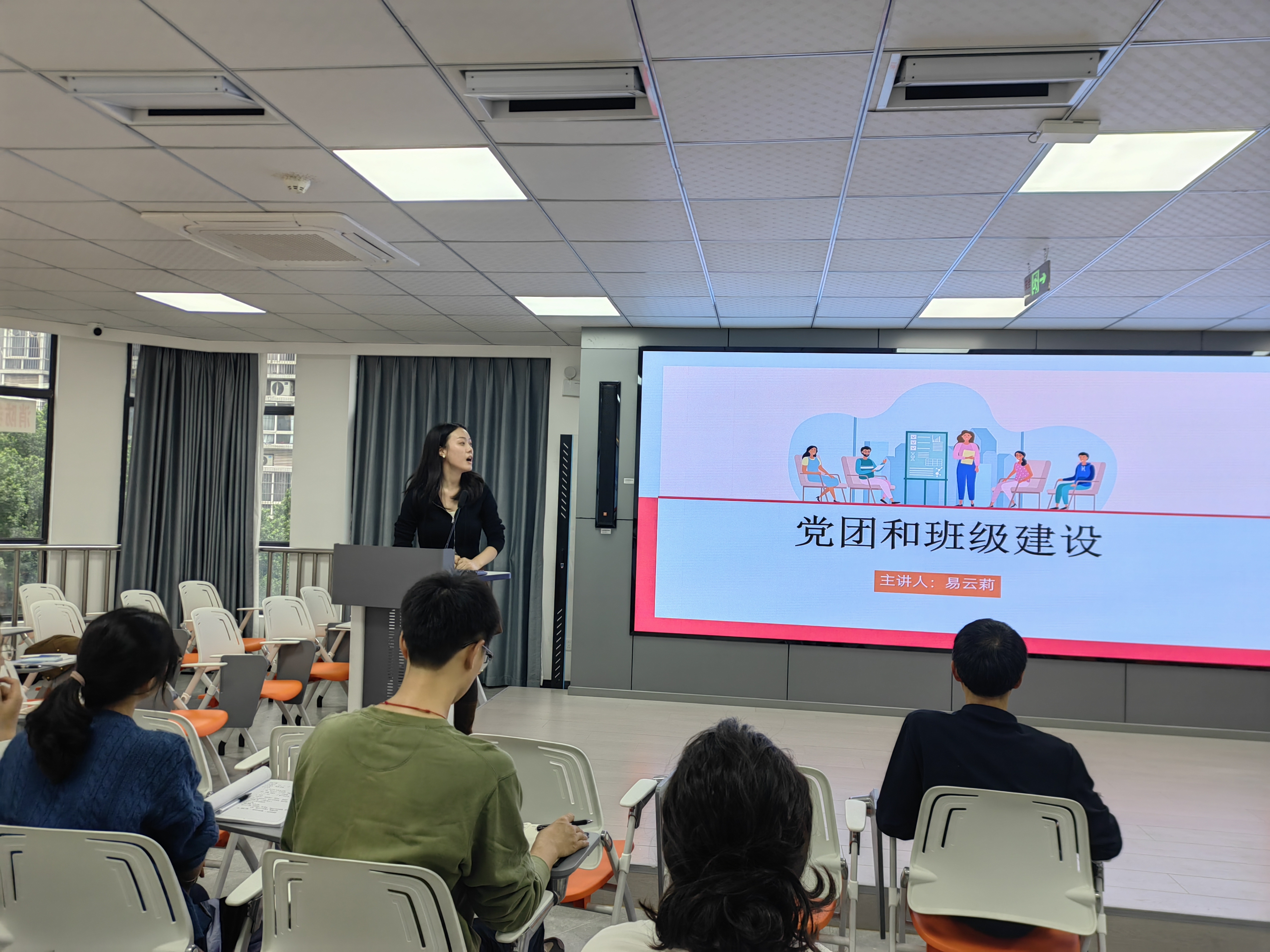 来自智能制造学院的专职辅导员易云莉老师聚焦党团建设主题,与大家分享了她的123班团一体化建设的经验做法。易老师指出,大学班级是大学的基本组织形式,也是大学生自我成长,自我管理,自我教育的重要阵地,而党团和班级建设的工作主要是开展学生骨干的遴选、培养、激励工作,开展学生入党积极分子培养教育工作,开展学生党员发展和教育管理服务工作,指导学生党支部和班团组织建设。随后,她围绕班团建设的工作原则、工作内容、工作困境和工作案例等内容进行了专题分享。