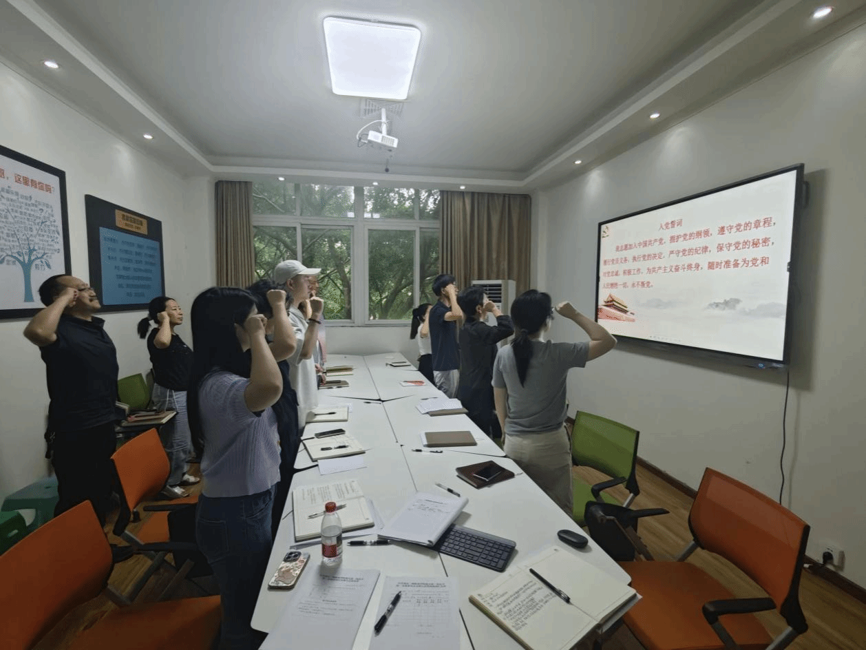 最后,党委副书记杨梅同志带领支部全体党员重温入党誓词。