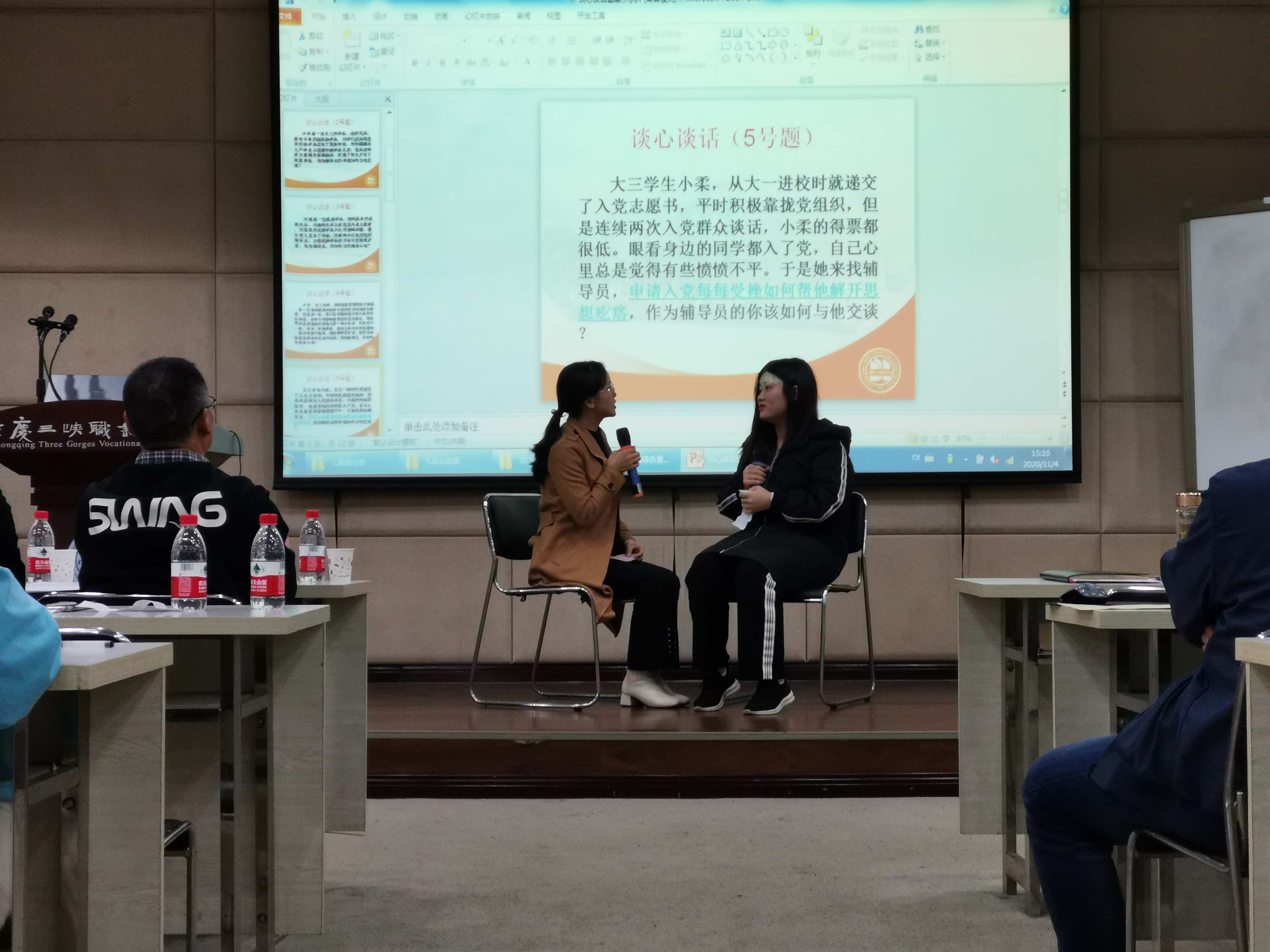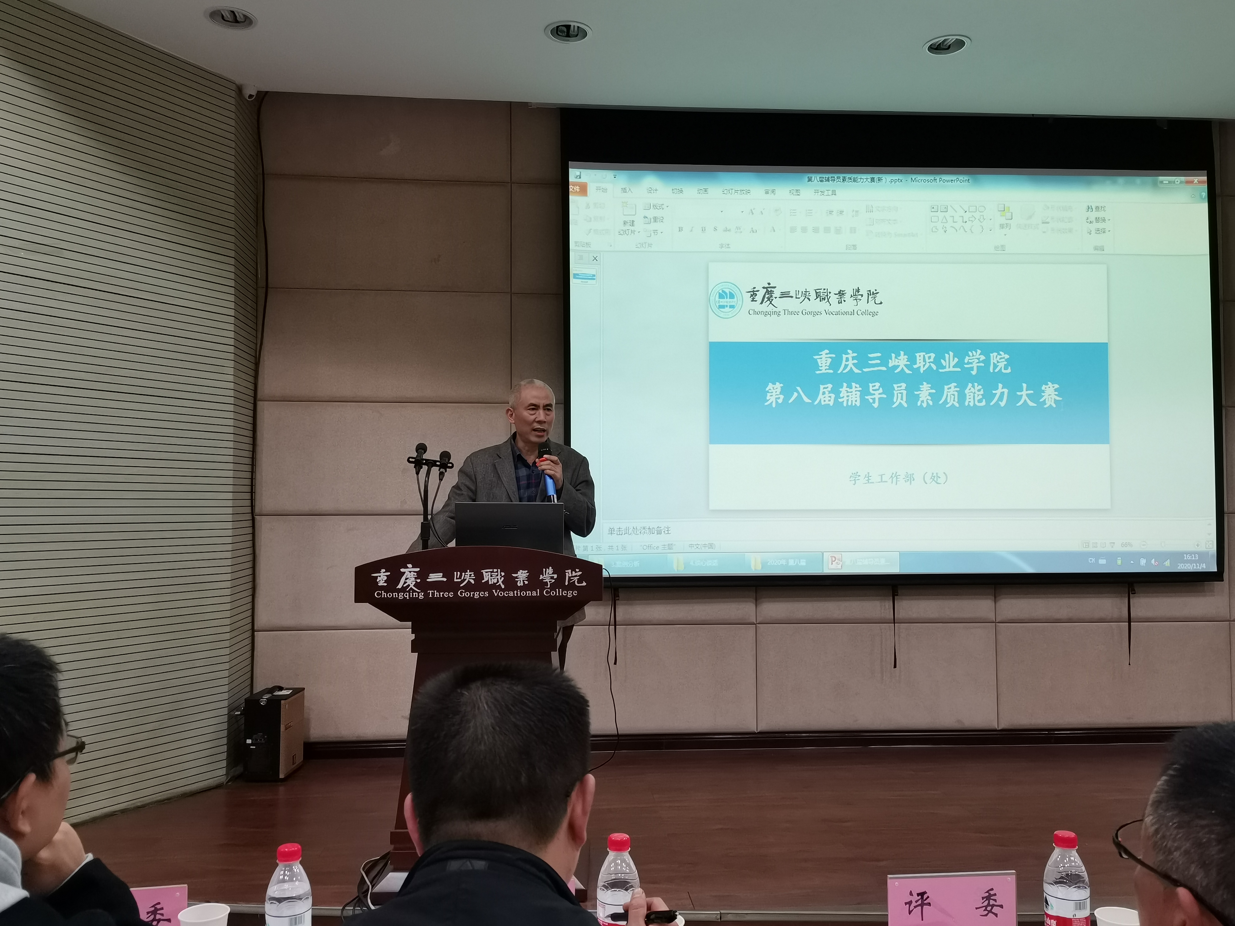 比赛结束后,重庆三峡学院学生处处长任江林对选手们的表现做了精彩的点评。他充分肯定了参赛选手的现场表现,并对理论宣讲的环节题目进行剖析,并从案例分析的条理性,谈心谈话的针对性、策略性及谈话效果等角度给出了自己意见和建议。