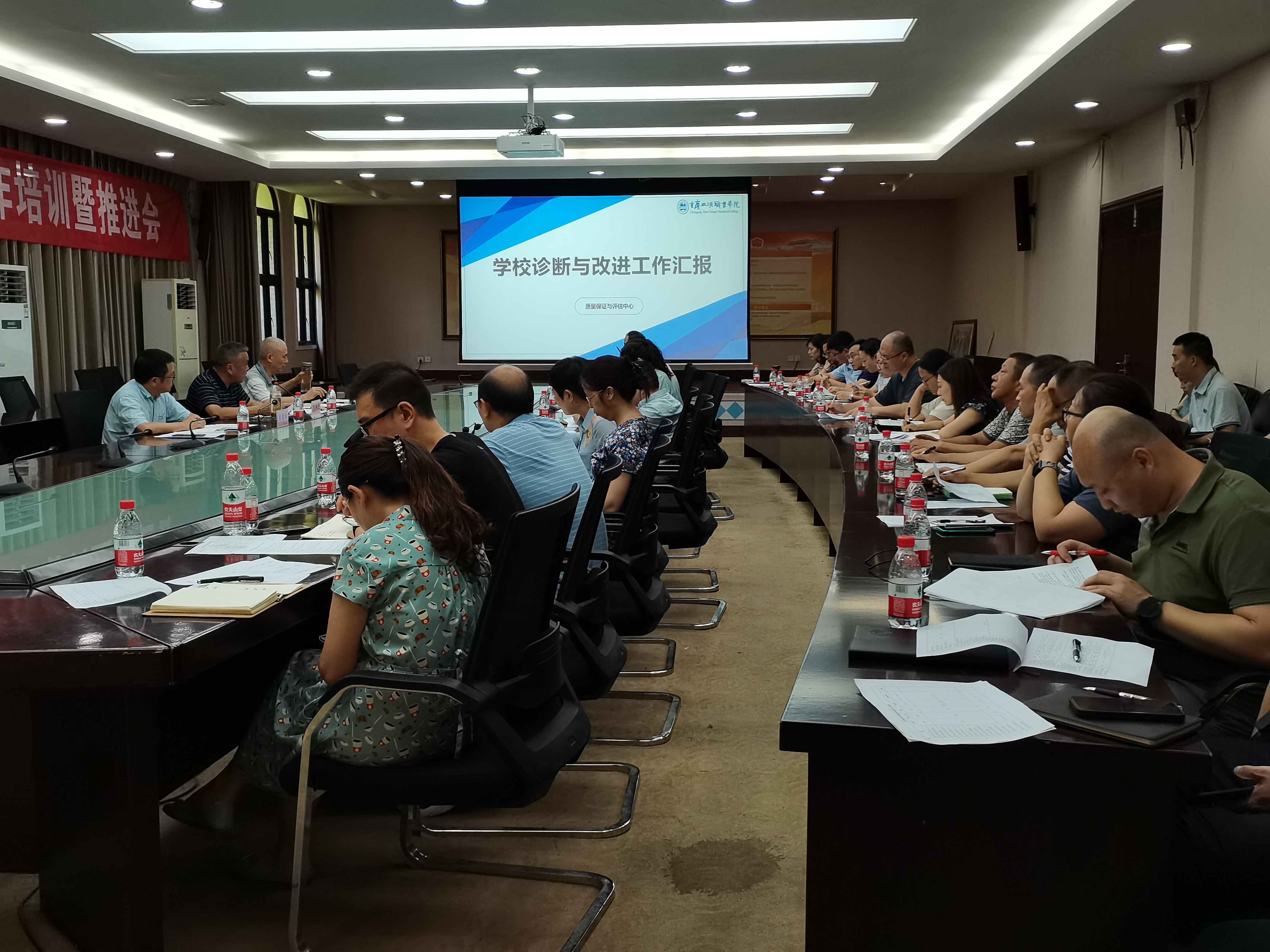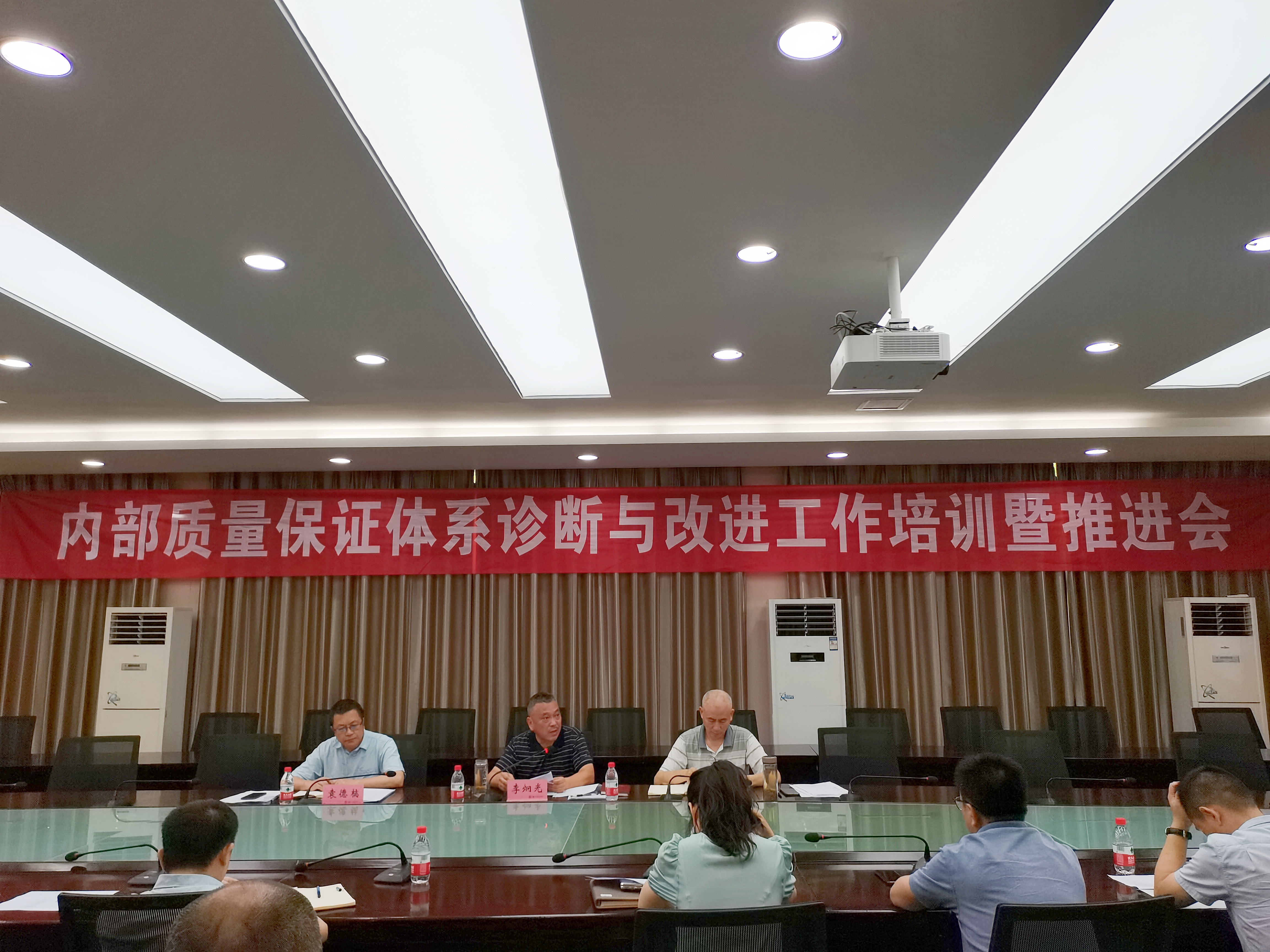 为迎接学院内部质量保证体系诊断与改进复核工作,全面落实我院诊断与改进的各项工作任务,2022年7月11日上午,我院在行政楼303会议室举办内部质量保证体系诊断与改进工作培训暨推进会,学院院长李炯光,副院长赵福奎、袁德梽出席会议,全体中层干部和诊改五个层面的相关工作人员参加会议。会议由李炯光院长主持。