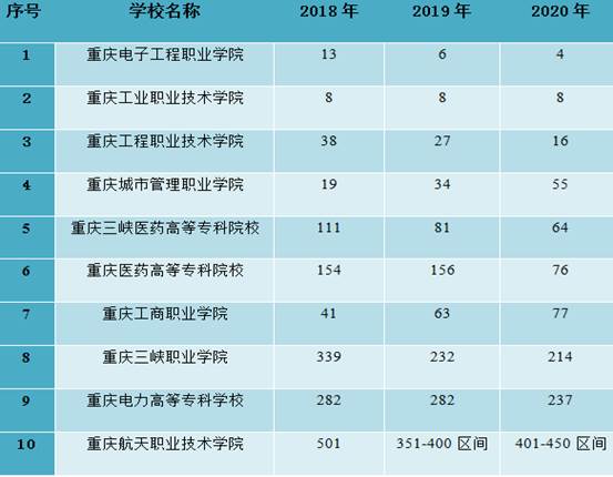 三、重庆市十所“双高”院校近三年在全国排名情况
