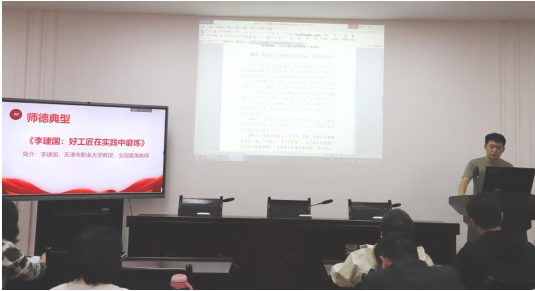 第一党支部纪检委员陈雄同志以《李建国:好工匠在实践中磨炼》;党员公职人员发生醉驾行为应如何适用条规和确定处分档次、海南通报秦金虎等六起党员干部和公职人员醉驾典型案例开展了师德师风专题警示教育。