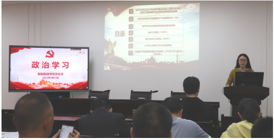 4月23日下午,智能制造学院在奥训楼308会议室开展了4月政治理论学习,会议由党总支组织员杨德君主持,全体教职工参加了学习。
