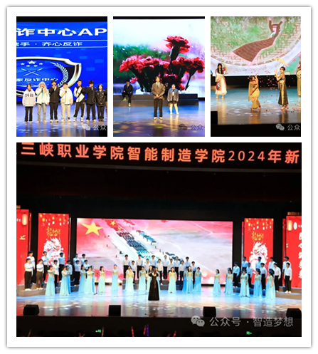 2024年1月3日下午17点,智能制造学院“智绘青春梦,匠心筑未来”2024年新年晚会在重庆三峡职业学院大学生活动中心正式开幕。学校党政办、学工部、校团委、智能制造学院相关负责人及600余名师生欢聚一堂,共贺新年。