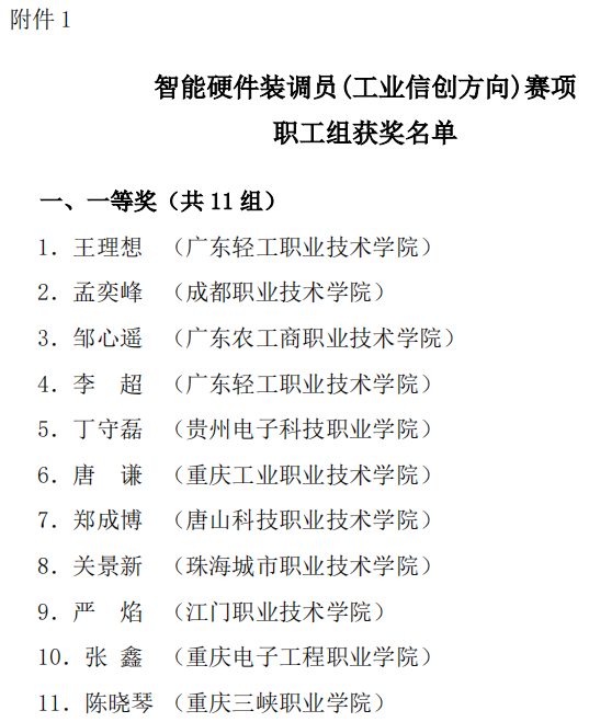 2023年12月10日,由中国电子企业协会、中国就业培训技术指导中心主办的2023年全国行业职业技能竞赛—第二届全国电子企业职业技能竞赛智能硬件装调员(工业信创方向)赛项,其职工组全国总决赛在广东轻工职业技术学院隆重举行,大赛吸引了来自全国各地的逾百支优秀队伍报名参与角逐。本次大赛对获得职工组前3名的选手,授予“全国技术能手”称号。对获得前4-15名的选手,按相关规定晋升高级工职业技能等级,已具有高级工职业技能等级的,可晋升技师职业技能等级。