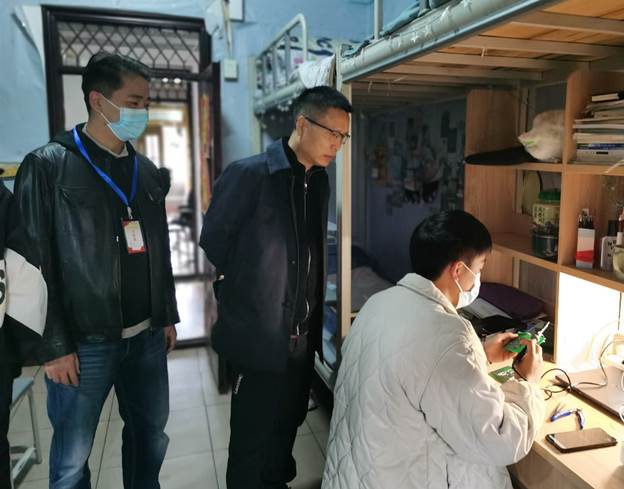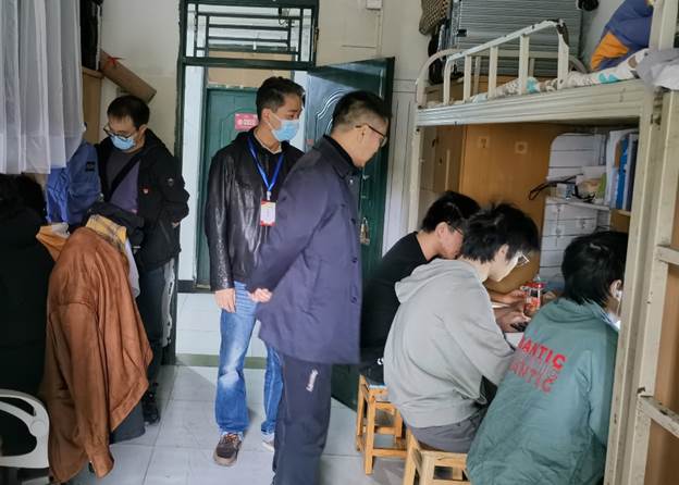 走访过程中,学院领导和老师们详细了解了同学们目前的日常生活状态和线上学习情况。熊江指出,希望同学们要坚定信心,做好个人防护,保持宿舍卫生,调整好心态,多与辅导员老师、任课老师和家长保持沟通联系,积极配合学院做好校园疫情防控各项工作。同时还鼓励同学们在学习之余多发展个人爱好,尤其要加强身体锻炼,注重身体健康,保持积极健康的心理状态。