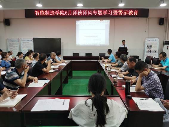 6月21日下午,智能制造学院在奥训楼308会议室开展了6月份师德师风暨警示教育专题学习。会议由专职组织员杨德君主持,全院教职工参加了学习。
